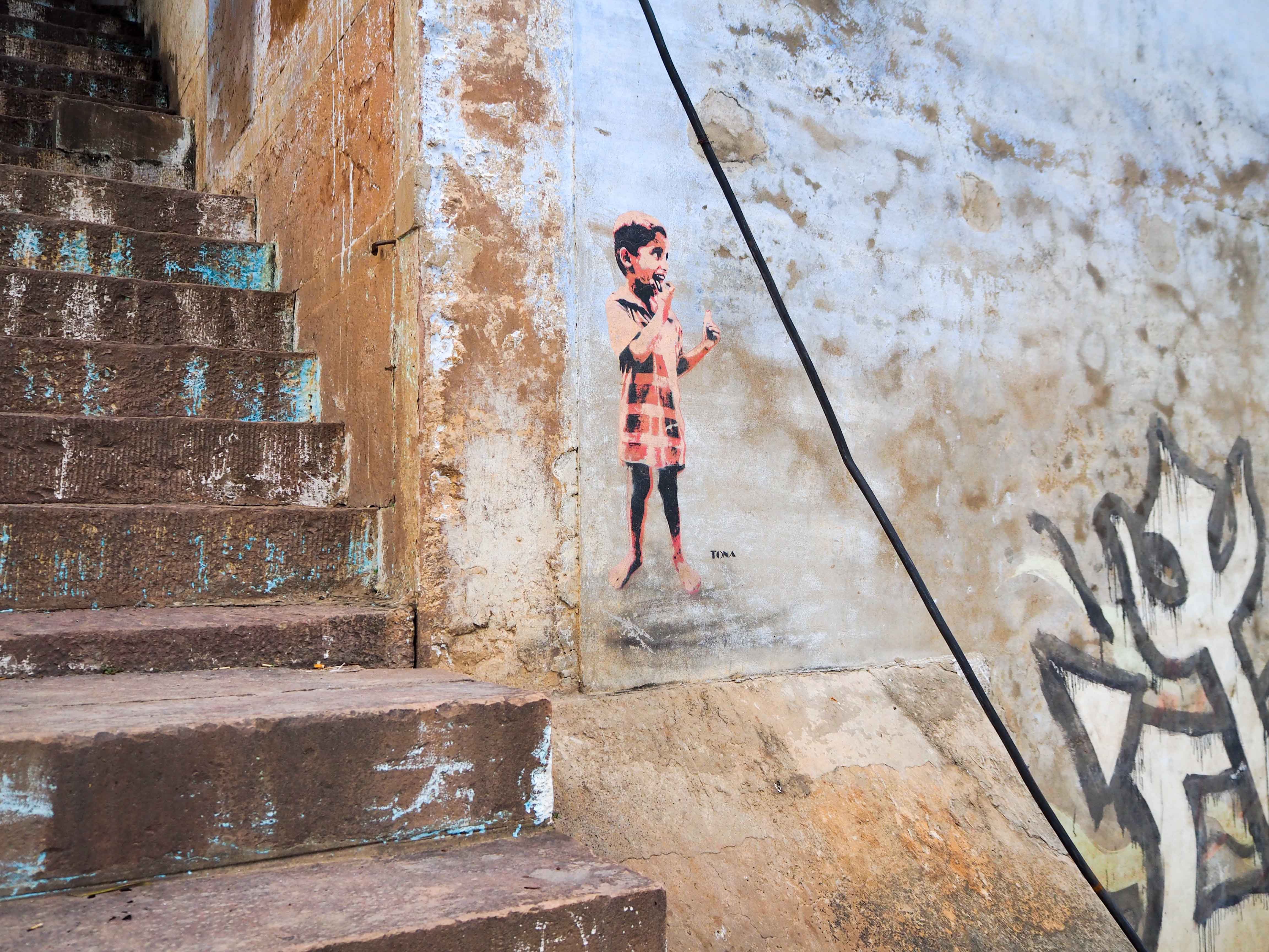 2016 war ich in Indien. Die Reise führte mich sowohl im Norden nach Delhi und Varanasi, als auch in den Süden. An verschiedenen Orten habe ich Street Art gefunden. Das Bemalen von Wänden ist in Indien ganz normal, aber als ich dann plötzlich Tona aus Hamburg und Captain Borderline aus Köln entdeckte, war ich begeistert.