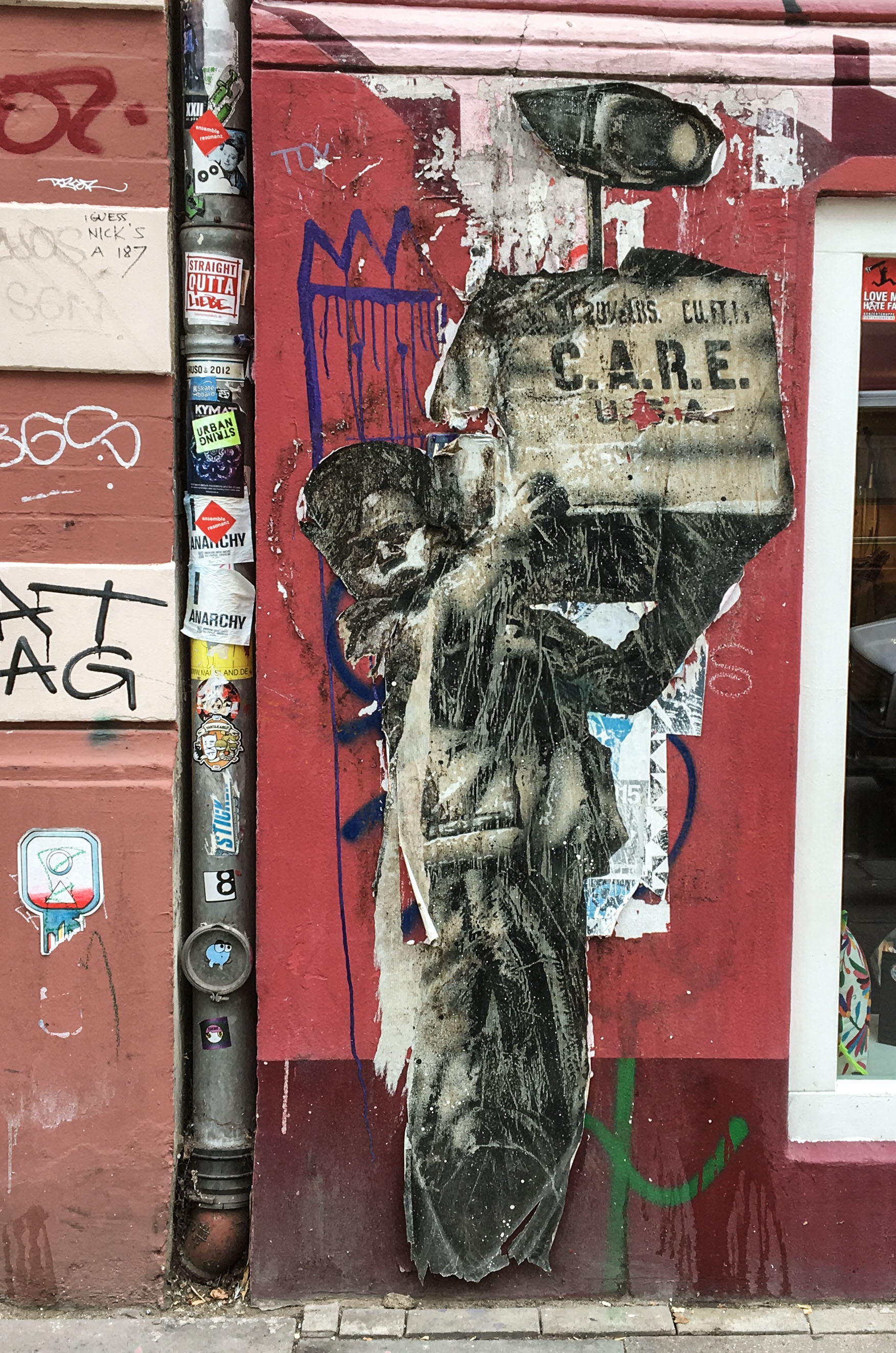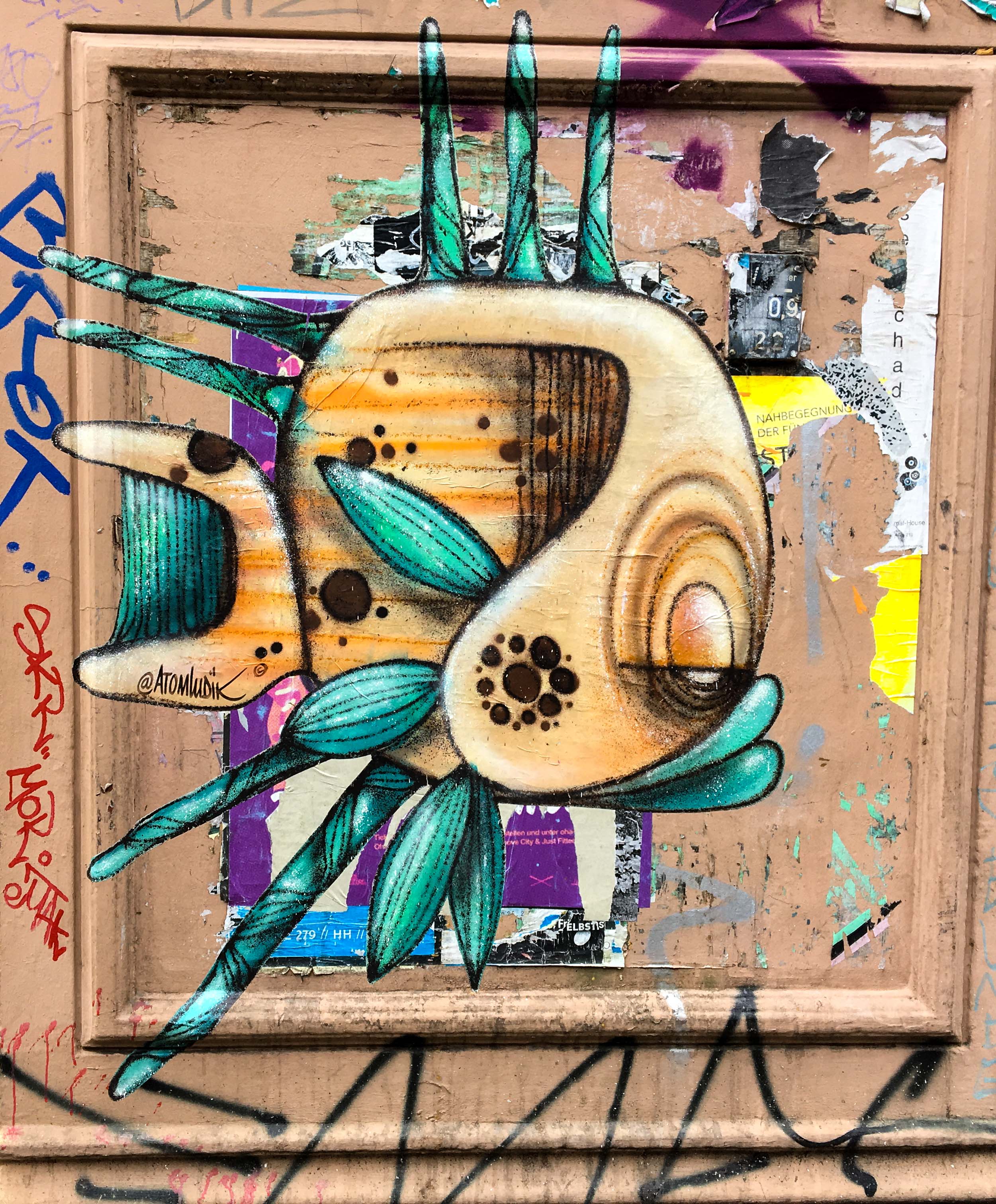 El Bocho, ein Berliner Künstler, dessen Identität geheim ist, hat sich wieder in Hamburg herumgetrieben. Manche seiner Arbeiten halten sich schon seit Jahren. Auf dem ersten Bild sind sogar ein paar Akteure aus Köln, z.B. Joiny, tätig gewesen.