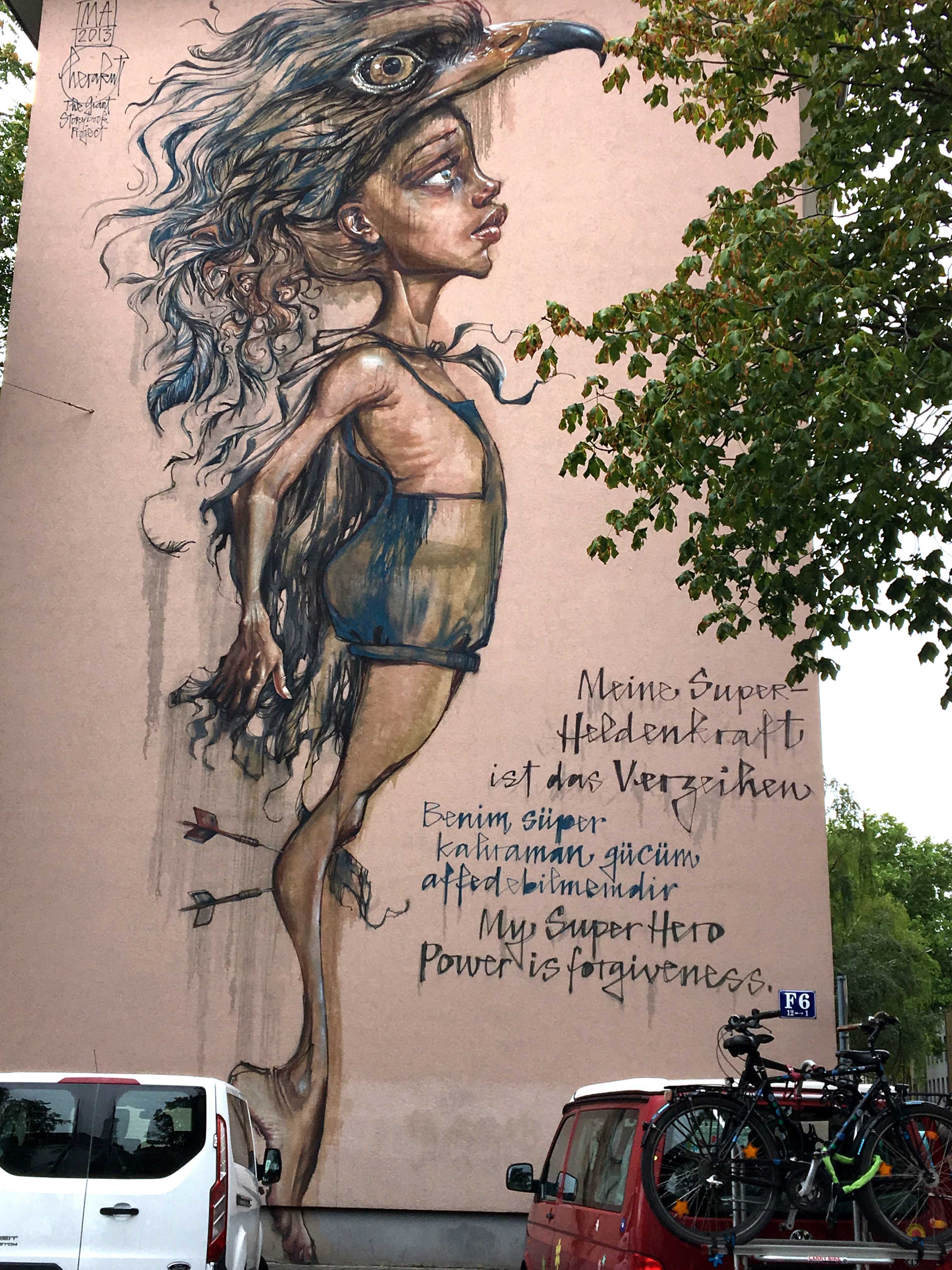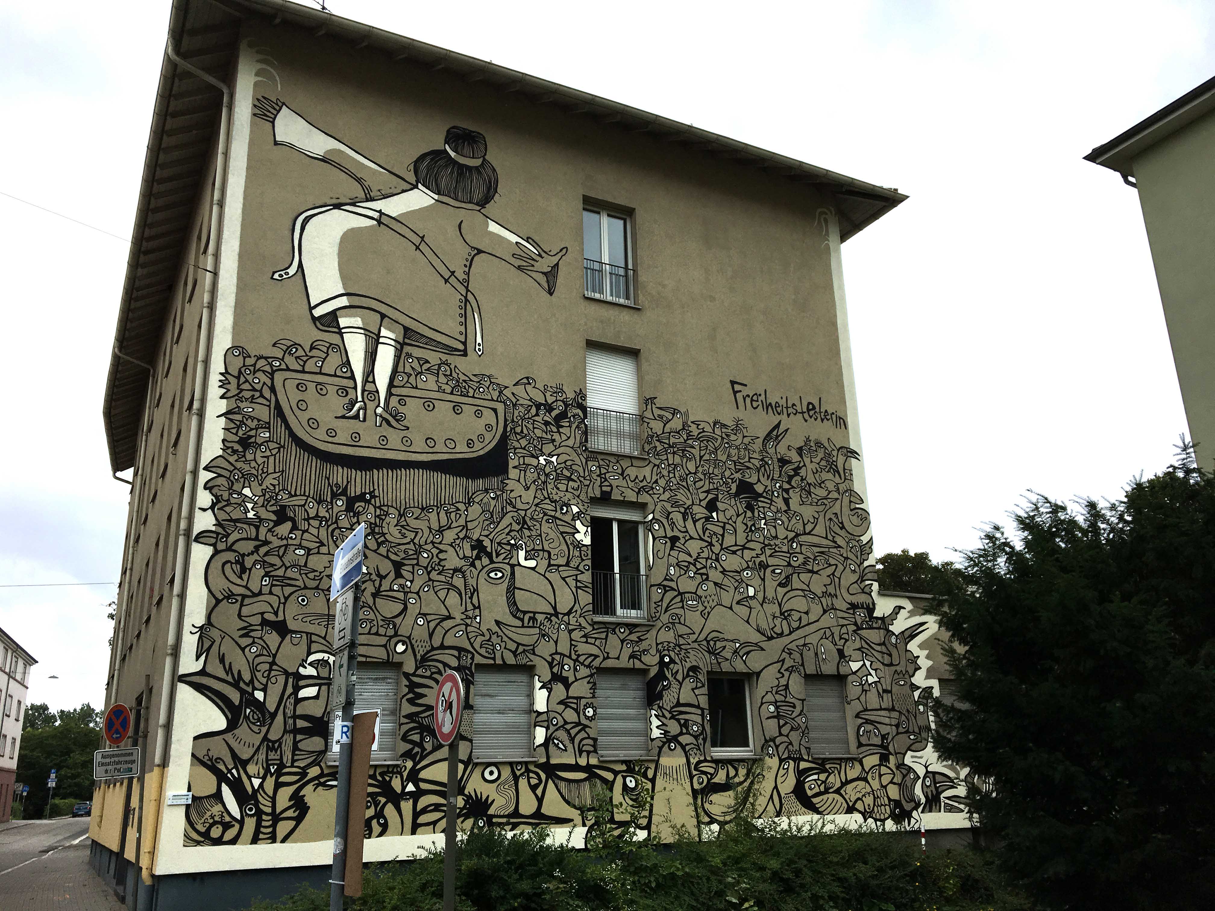 Auf dem Rückweg aus dem Sommerurlaub sind wir über Mannheim gefahren, weil wir erfahren haben, dass es dort ein Mural von Hendrik ECB Beikirch geben soll. Im Rahmen einer „Open Urban Art Gallery“ entstehen dort, initiiert von Stadt.Wand.Kunst, diverse Murals.