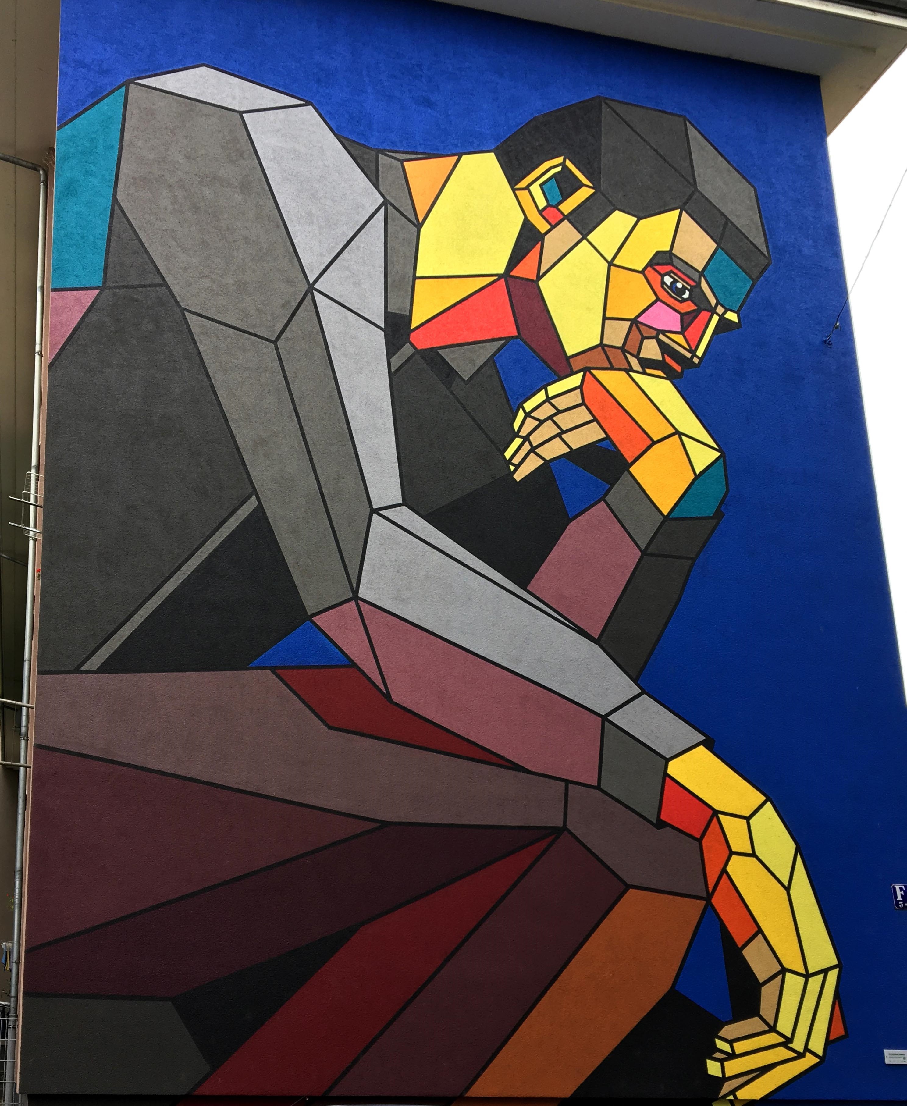 ASKE, aka Sicksystems, stammt aus Moskau und hat sich als Graffiti-Writer, Grafiker und Illustrator international einen Namen gemacht. In Mannheim hat er im Juli 2014 das Mural „Der Denker“ geschaffen. „Das New York Print Magazine setzte ihn 2010 auf die Top-20-Liste internationaler, aufstrebender Bildender Künstler. Seine künstlerische Karriere begann er im Jahr 2000. Schnell wurde er bekannt durch seine comicartigen Motive, die er aus einzelnen, voneinander abgegrenzten Flächen zusammensetzt. Dadurch erhalten seine Figuren etwas Steriles, Roboterhaftes – zugleich sind seine Bildkompositionen dynamisch und farbintensiv. Neben analogen Werken widmet sich ASKE auch der digitalen Kunst und ist als Grafiker für viele bekannte Marken (u.a. Nike, Reebok, Stussy, Nokia, Computer Arts Magazine) tätig“. Quelle: Stadt.Wand.Kunst