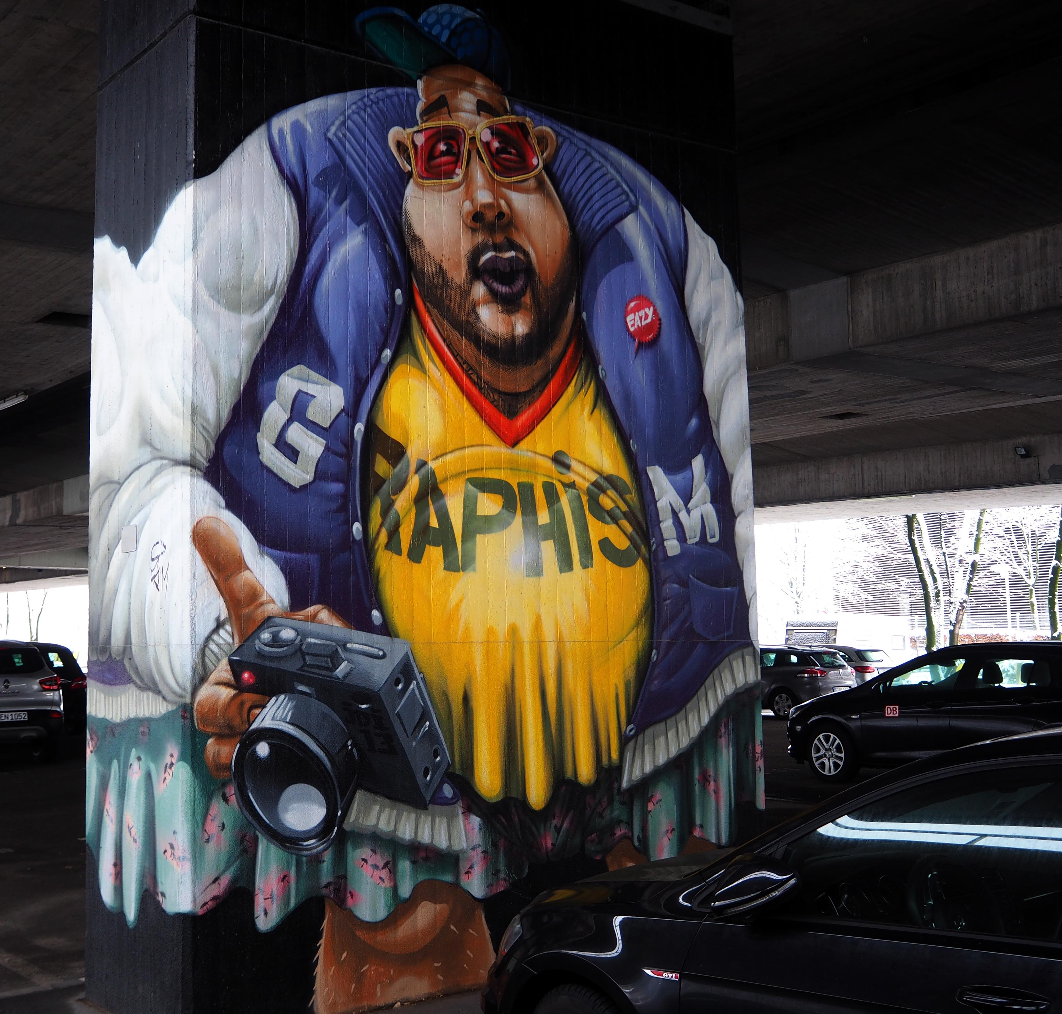 Seit 2011 ist das Gelände an der Donnersbergerbrücke eine große Street Art Galerie. Hier wurde mit Unterstützung des Baureferates München, die Grundierung und Farbe stellte, und in Kooperationen mit verschiedenen Organisationen, gesprüht und gemalt, nach Lust und Laune. Diverse lokale Künstler haben sich hier verewigt (bis einer kommt und drüber malt) und viele der Arbeiten existieren schon seit Jahren. Wenn man aufpasst wo man hintritt und auf Mundatmung umschaltet, finden sich ein paar nette pieces, u.a. auch von Rafael Gerlach, aka SatOne.