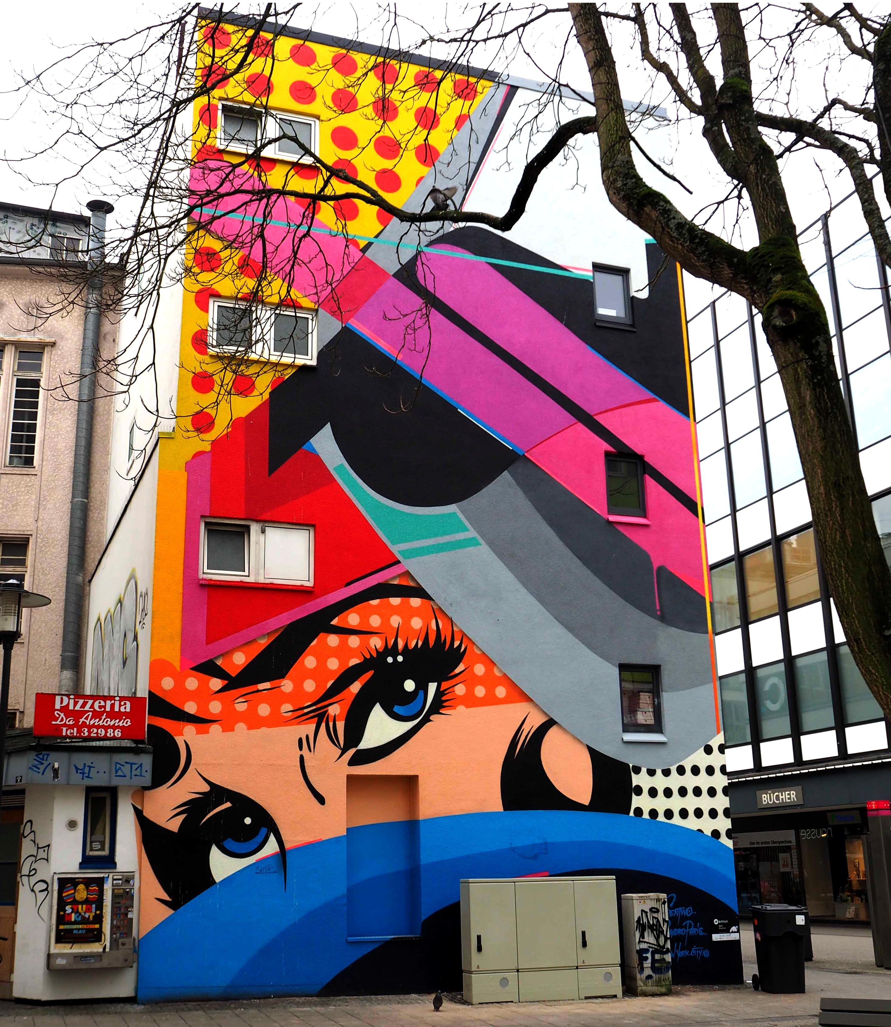 Saarbrücken hat Street Art zu bieten, und darunter finden sich namhafte Künstlerinnen und Künstler aus der ganzen Welt. Aryz, Fintan Magee aus Australien, der Russe Alexey Luka, Reso, Sen2 Wall2, Remi Rough & LX.One, Smash137 und das Kollektiv Sowat und Lek u.a. haben im Herbst 2017, im Rahmen des Festivals „Colors of Pop“, einen Parcours gestaltet. Die meisten Murals konnten wir gut zu Fuß in der Innenstadt ablaufen.