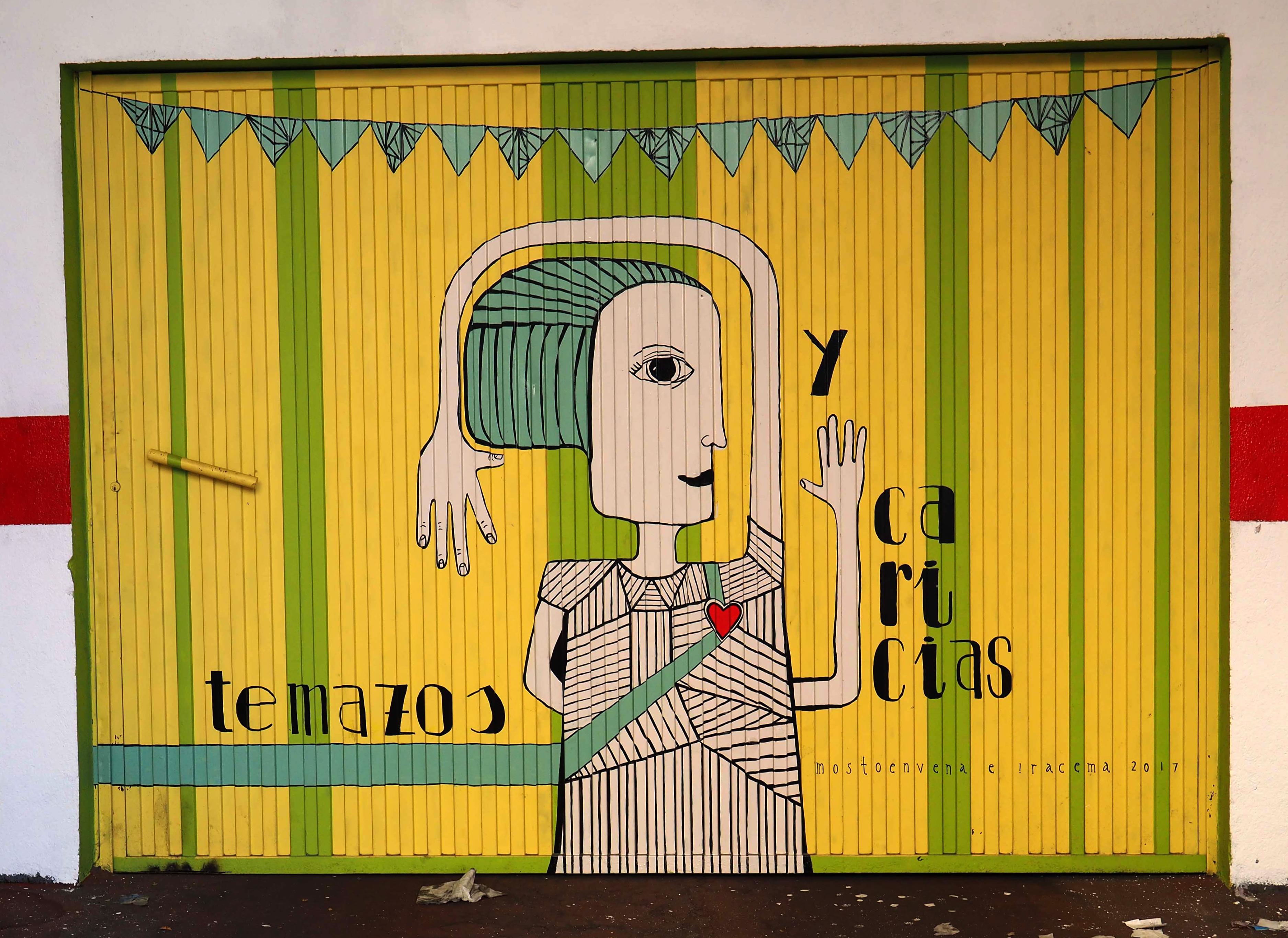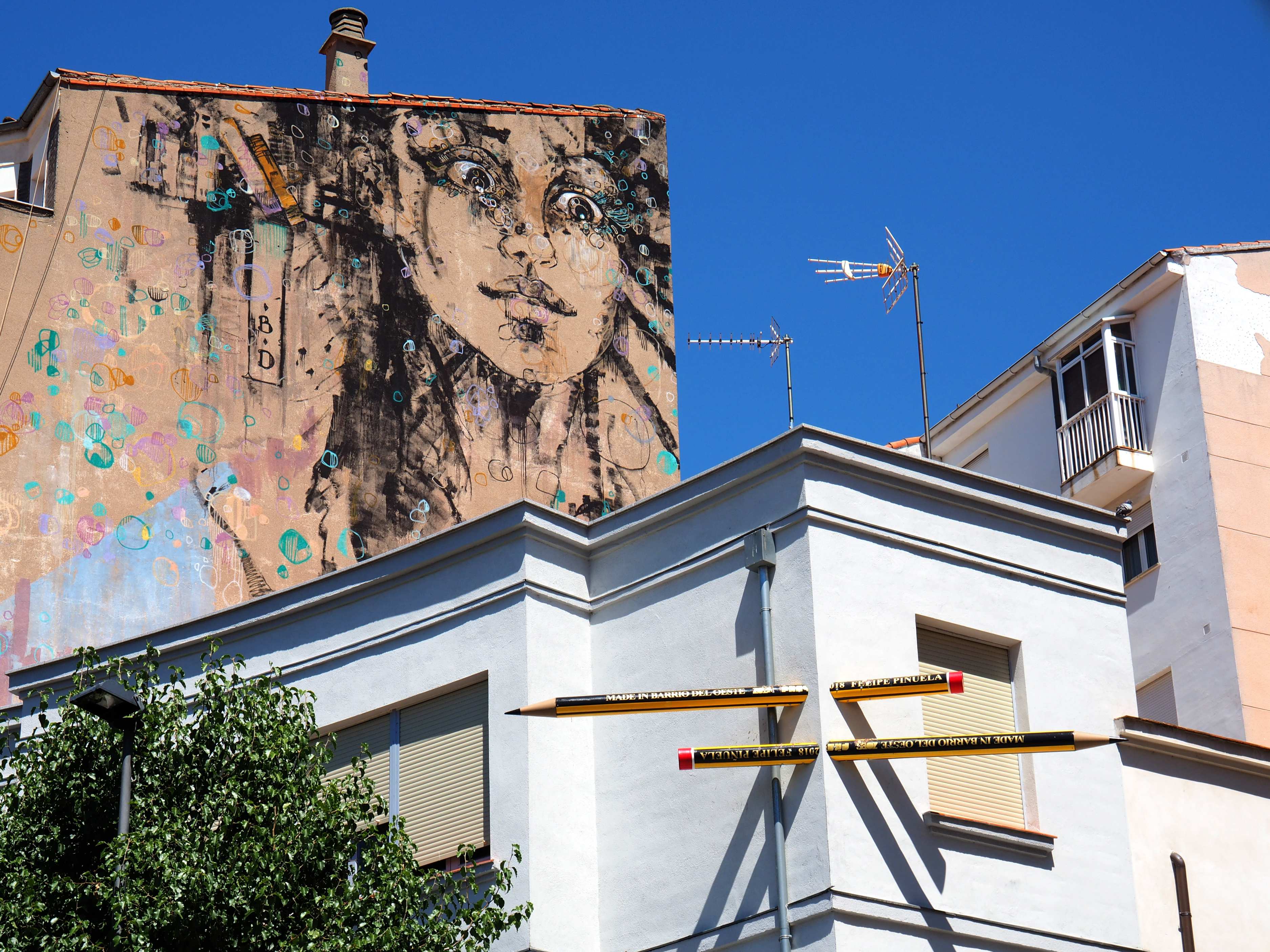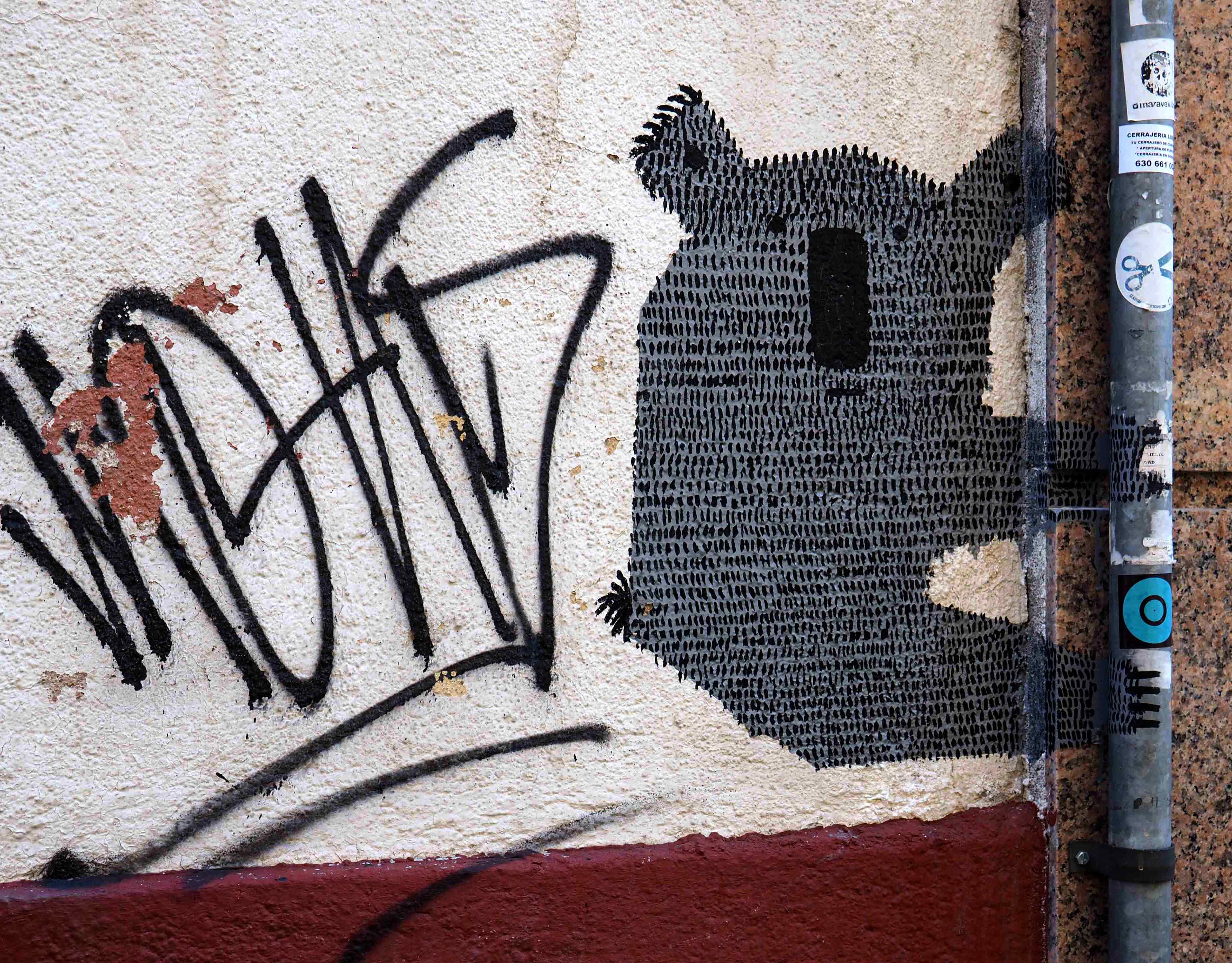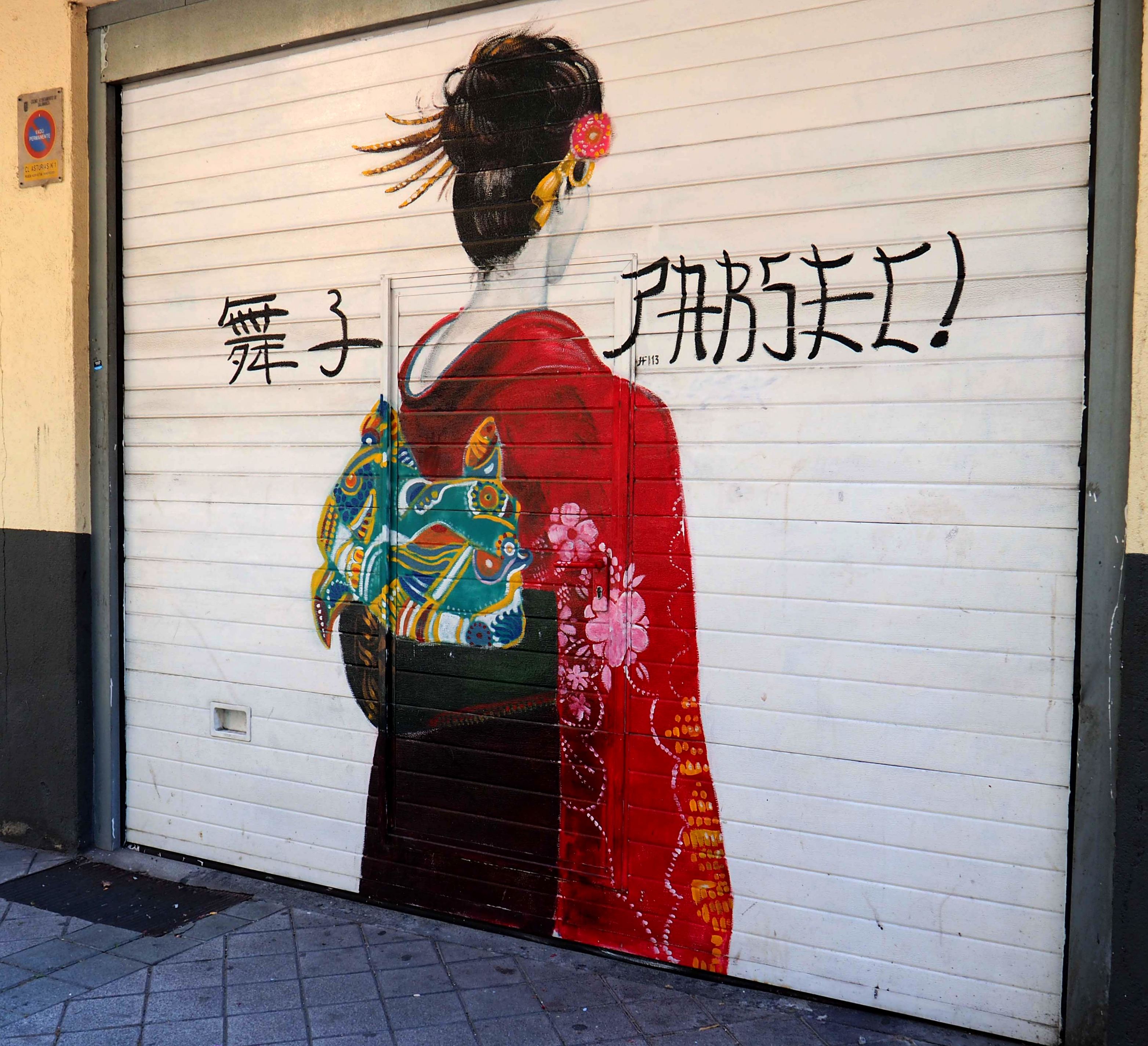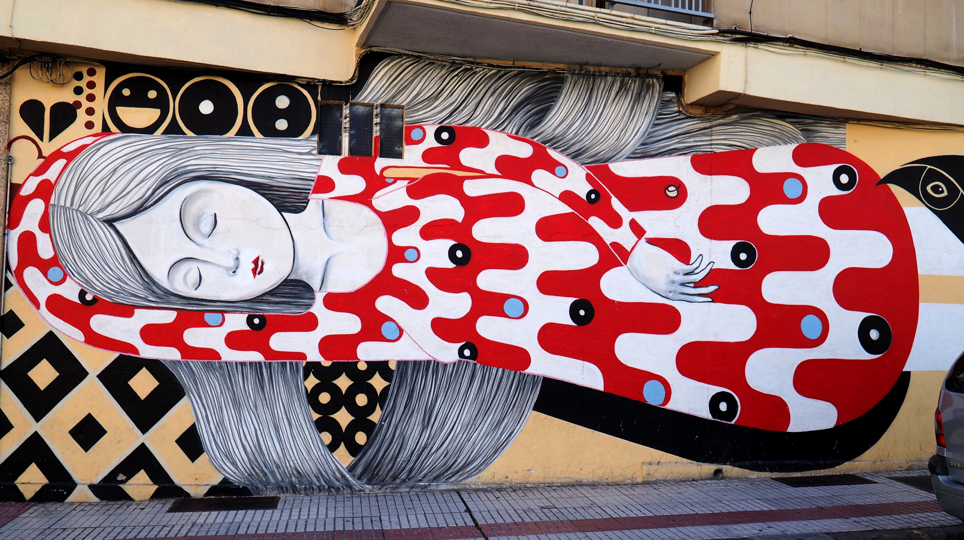 Bilder von Aguiló habe ich erstmalig in Lübeck entdeckt und ihn letztes Jahr in Madrid wiedergefunden. Beide bisher gefundenen Arbeiten waren Paste-ups und diesmal ein ganzes Mural! Das Foto verzerrt ein wenig, da es eine Panoramaaufnahme ist.