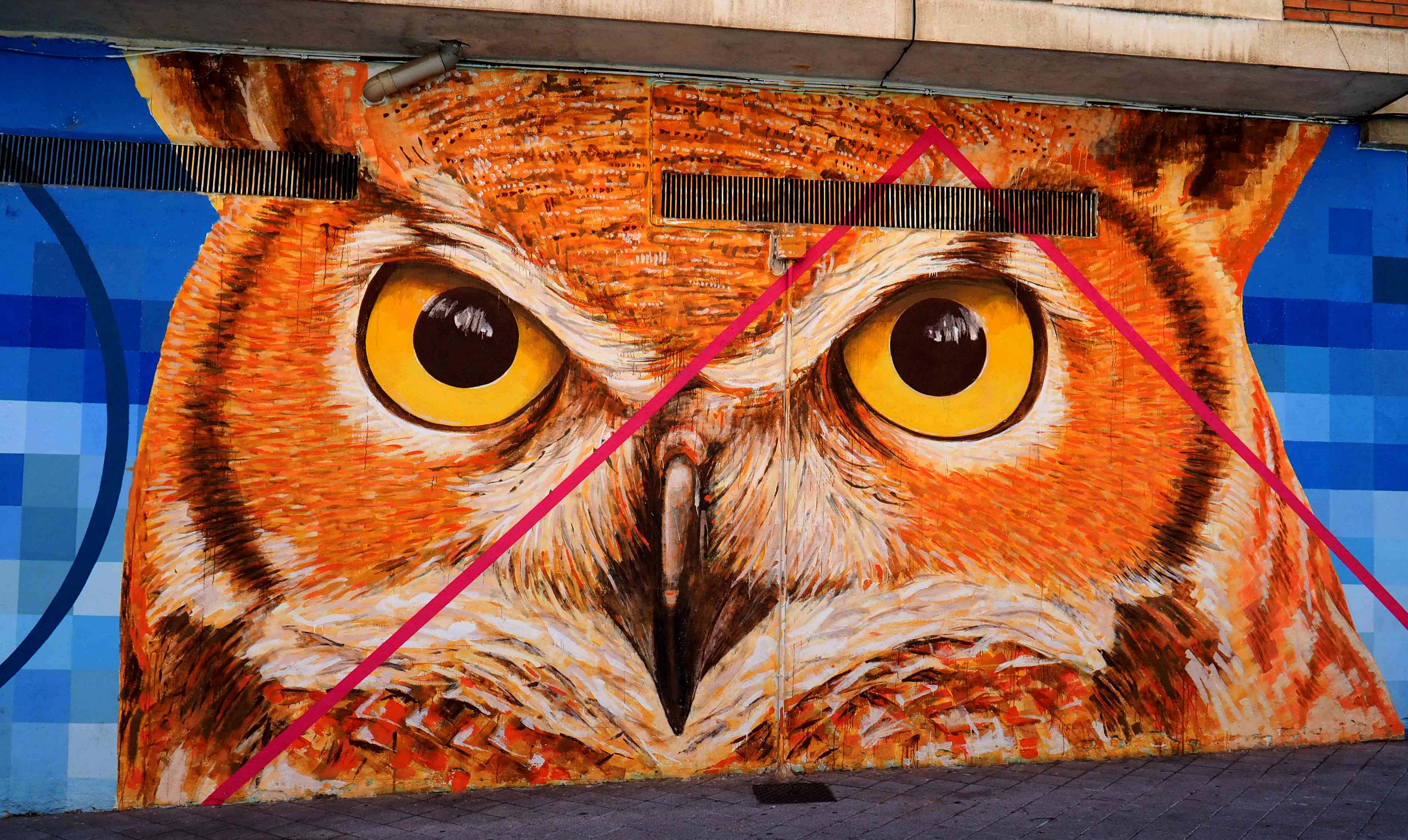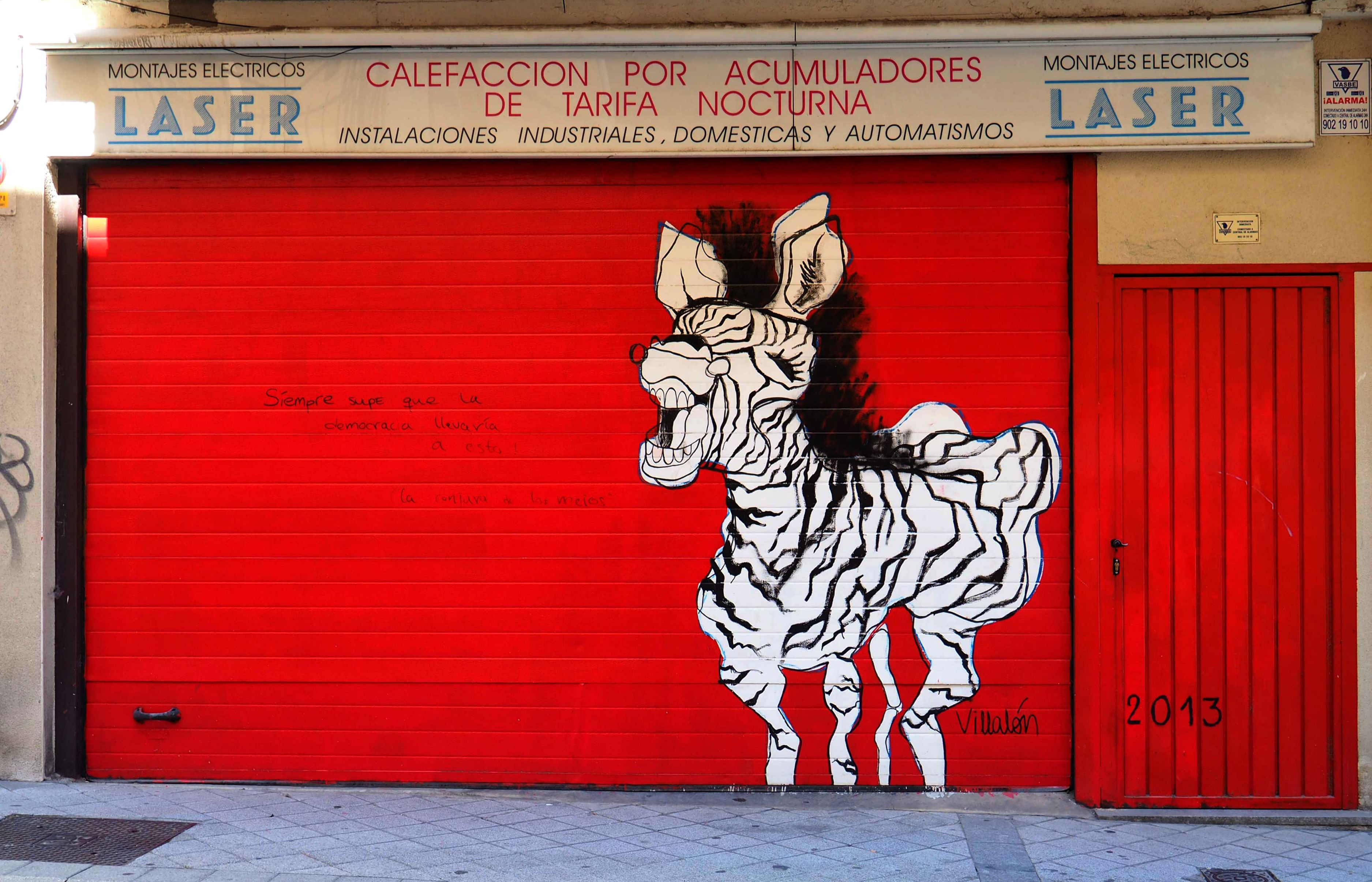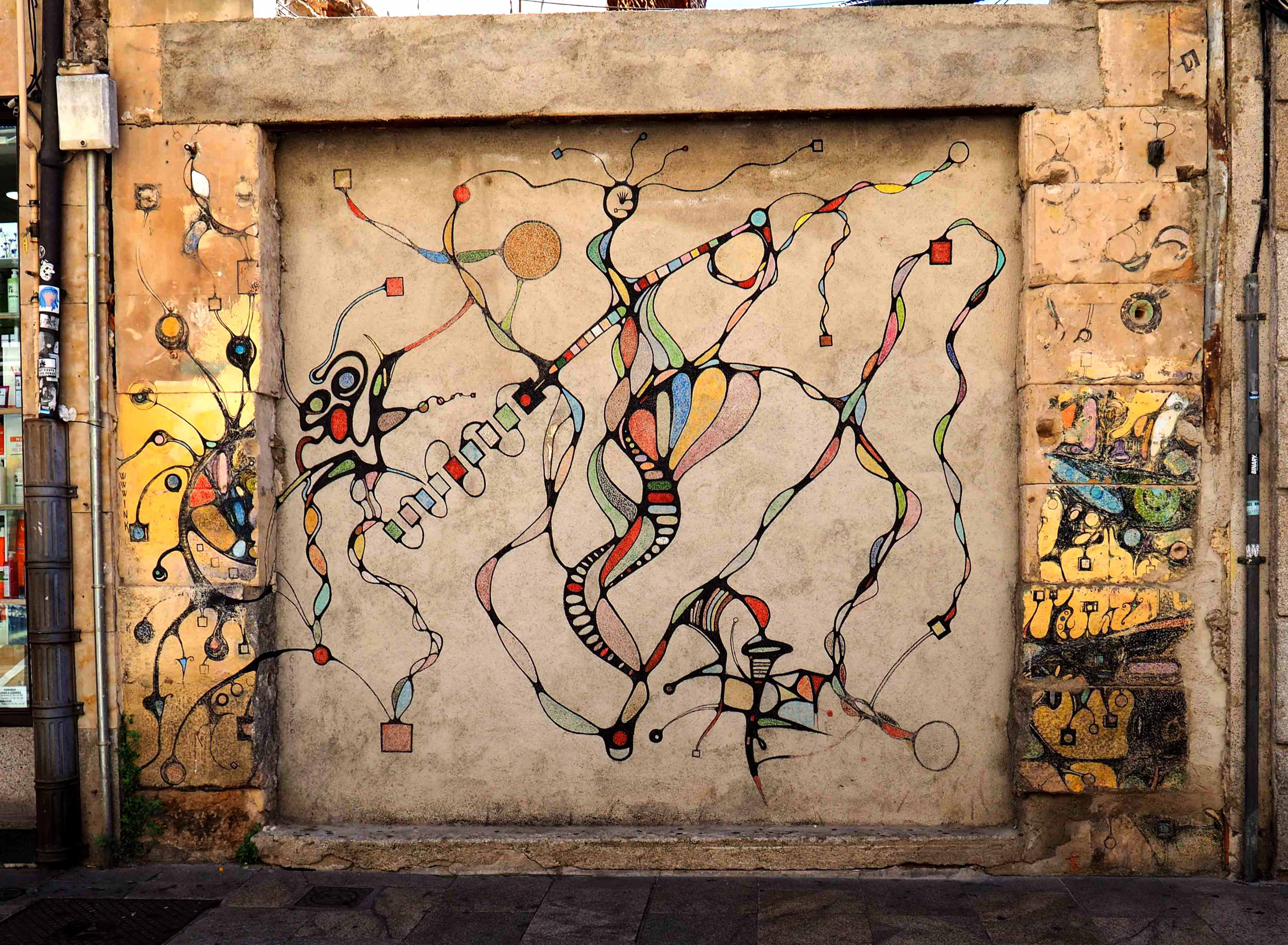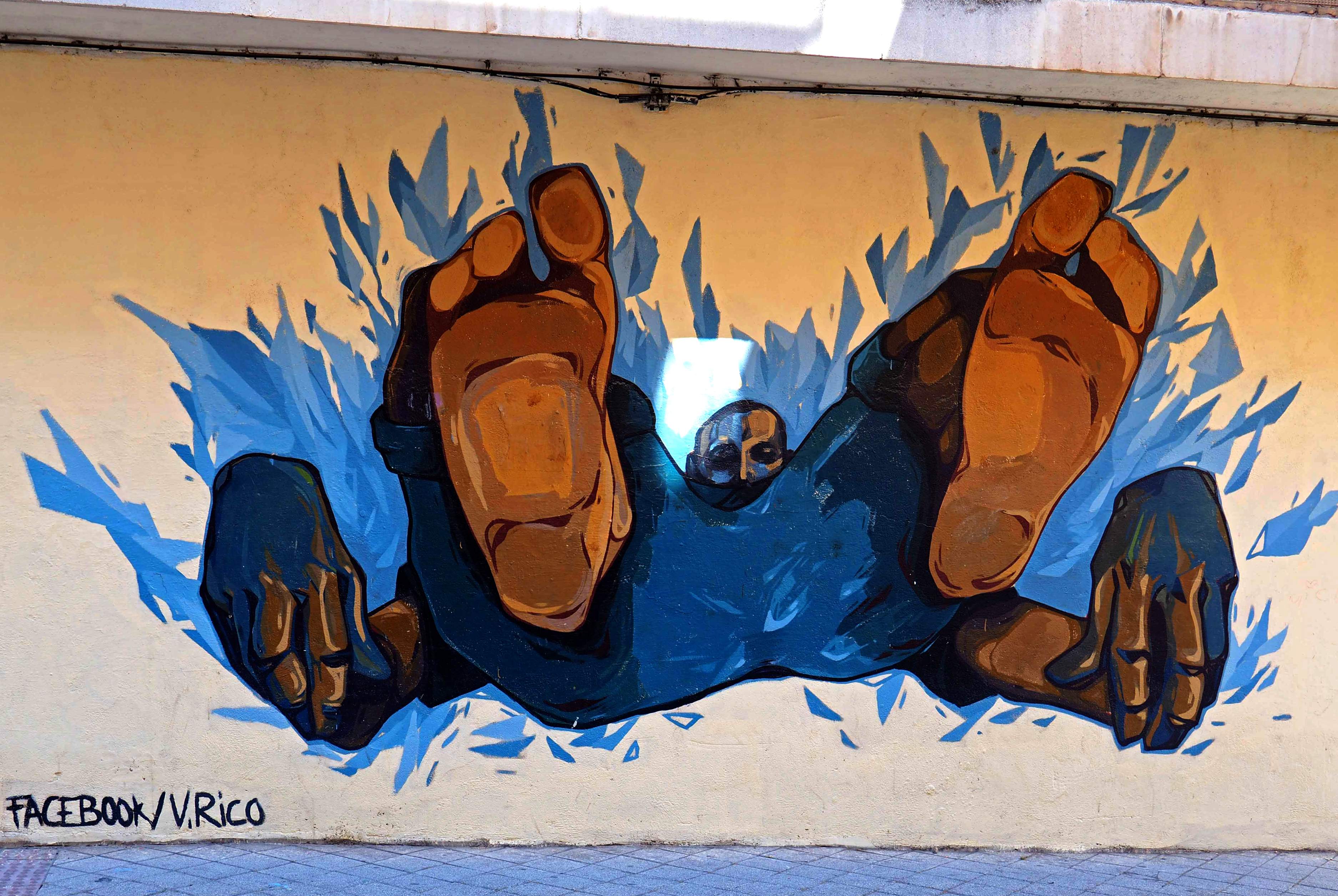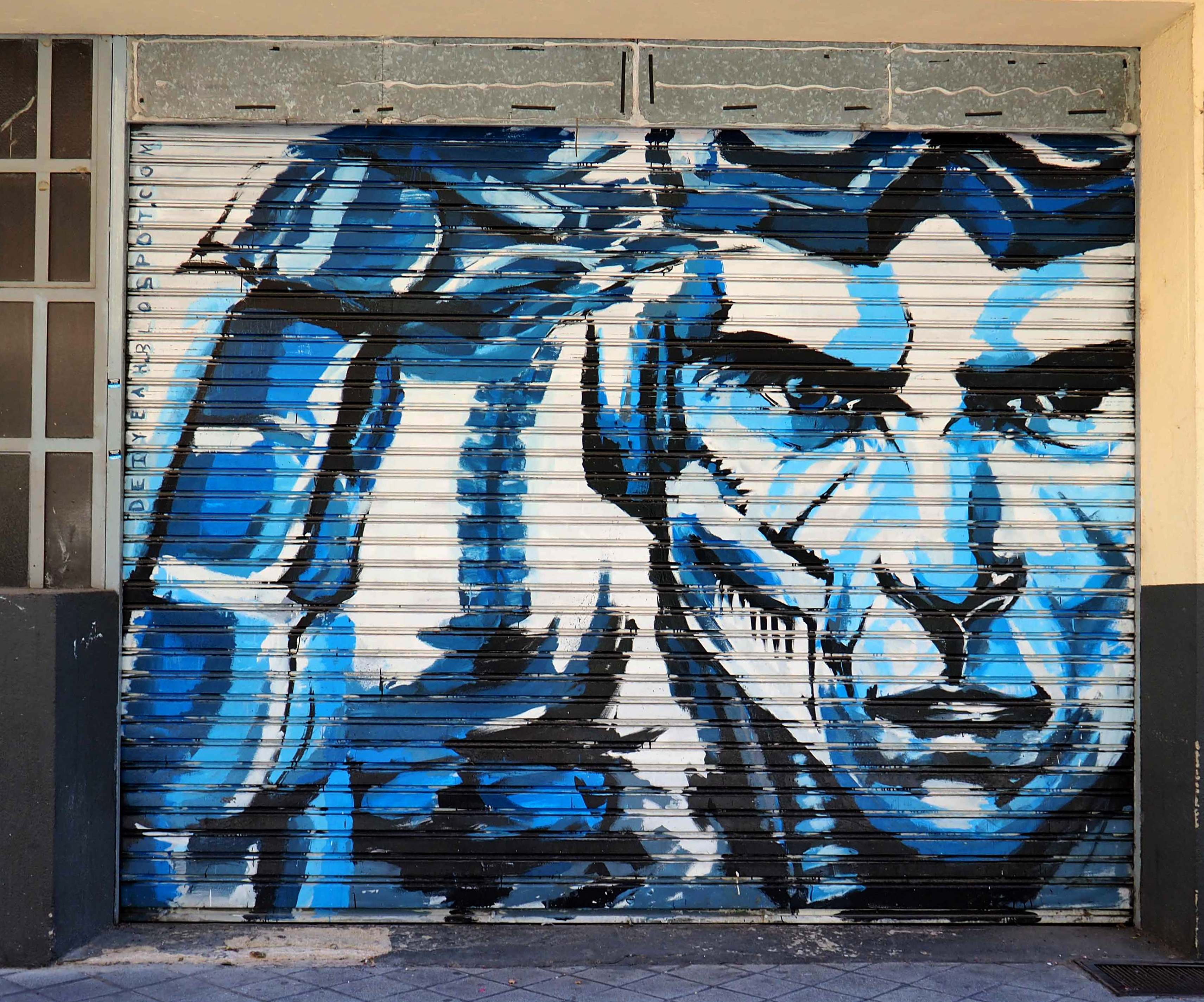 Bilder von Aguiló habe ich erstmalig in Lübeck entdeckt und ihn letztes Jahr in Madrid wiedergefunden. Beide bisher gefundenen Arbeiten waren Paste-ups und diesmal ein ganzes Mural! Das Foto verzerrt ein wenig, da es eine Panoramaaufnahme ist.