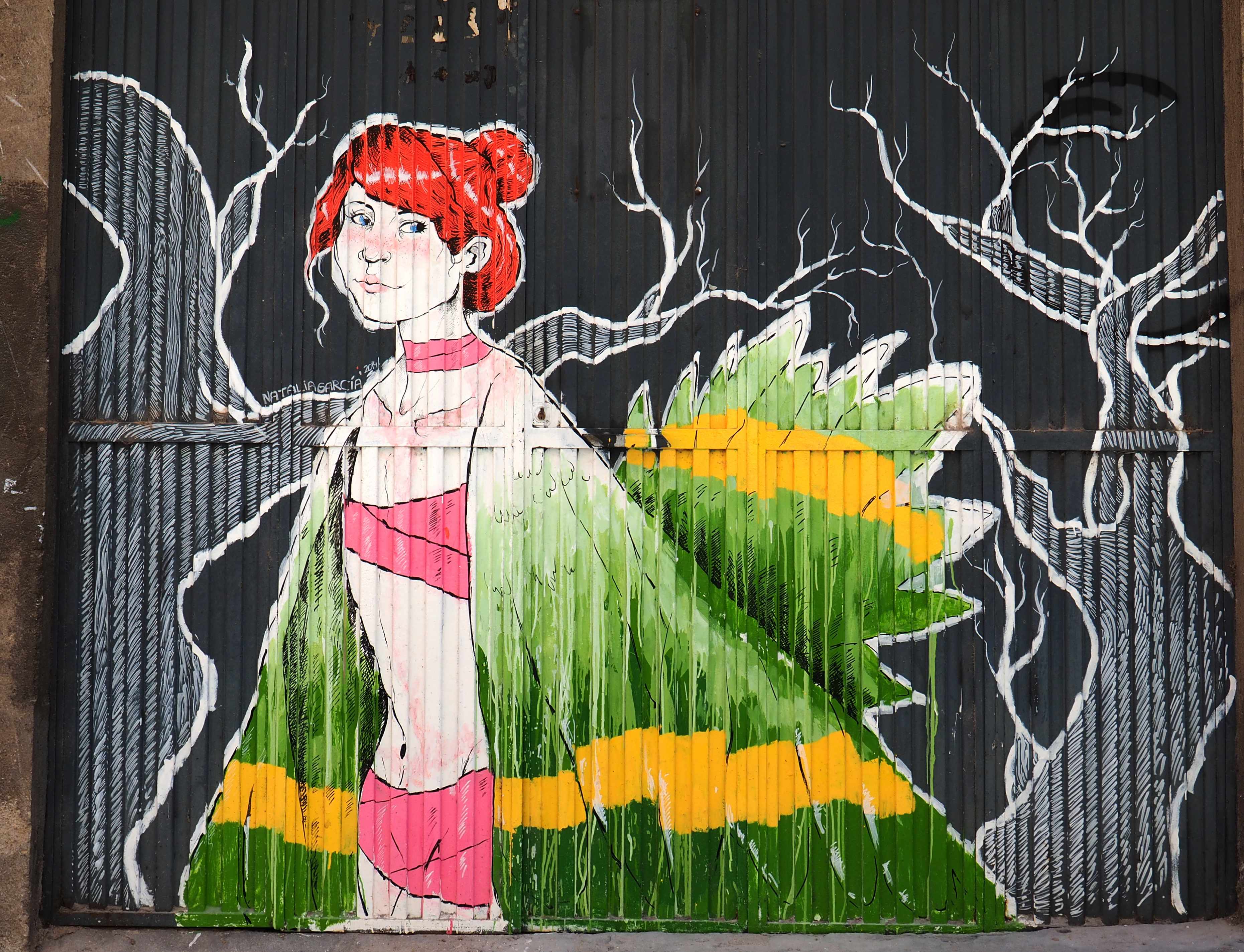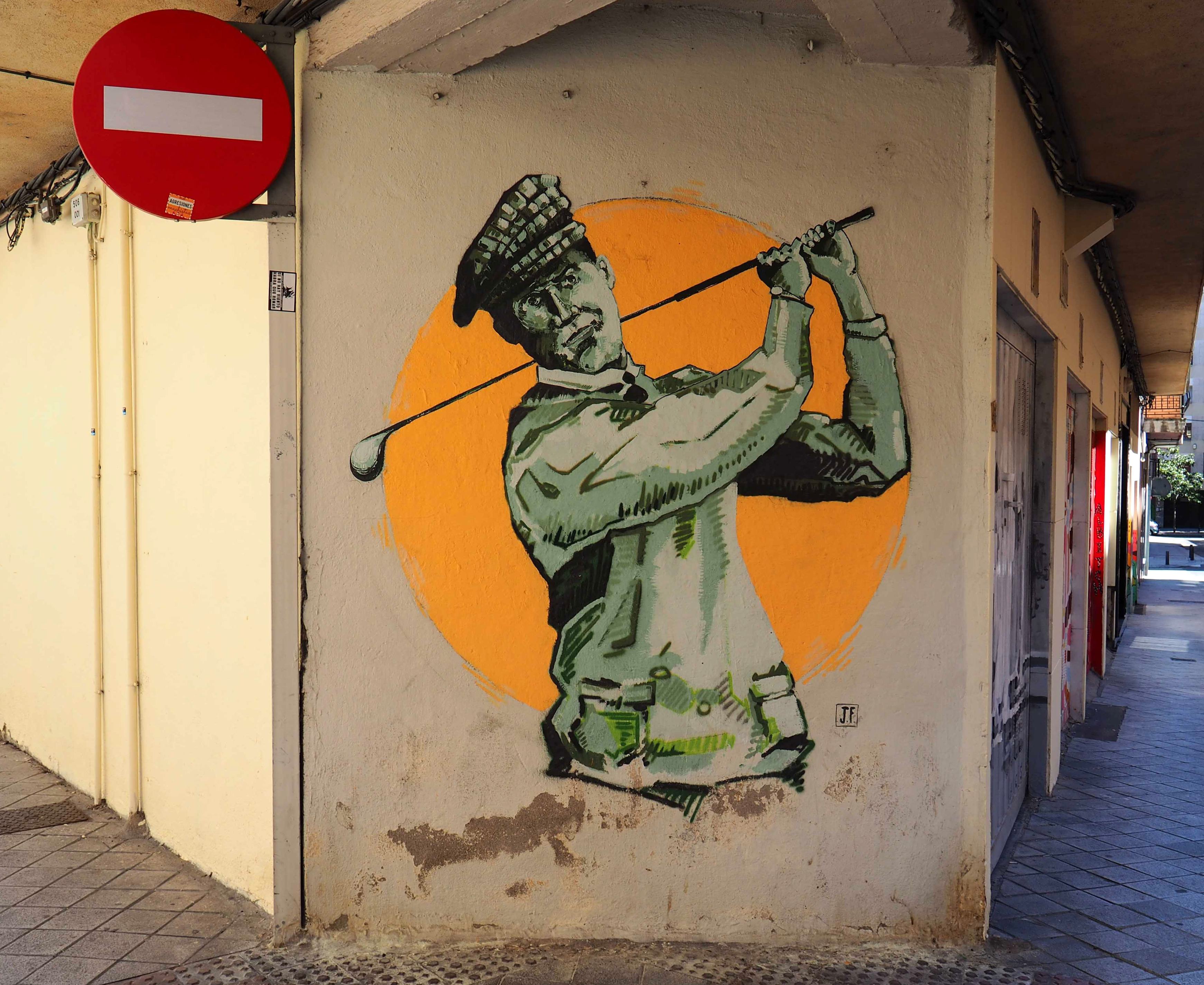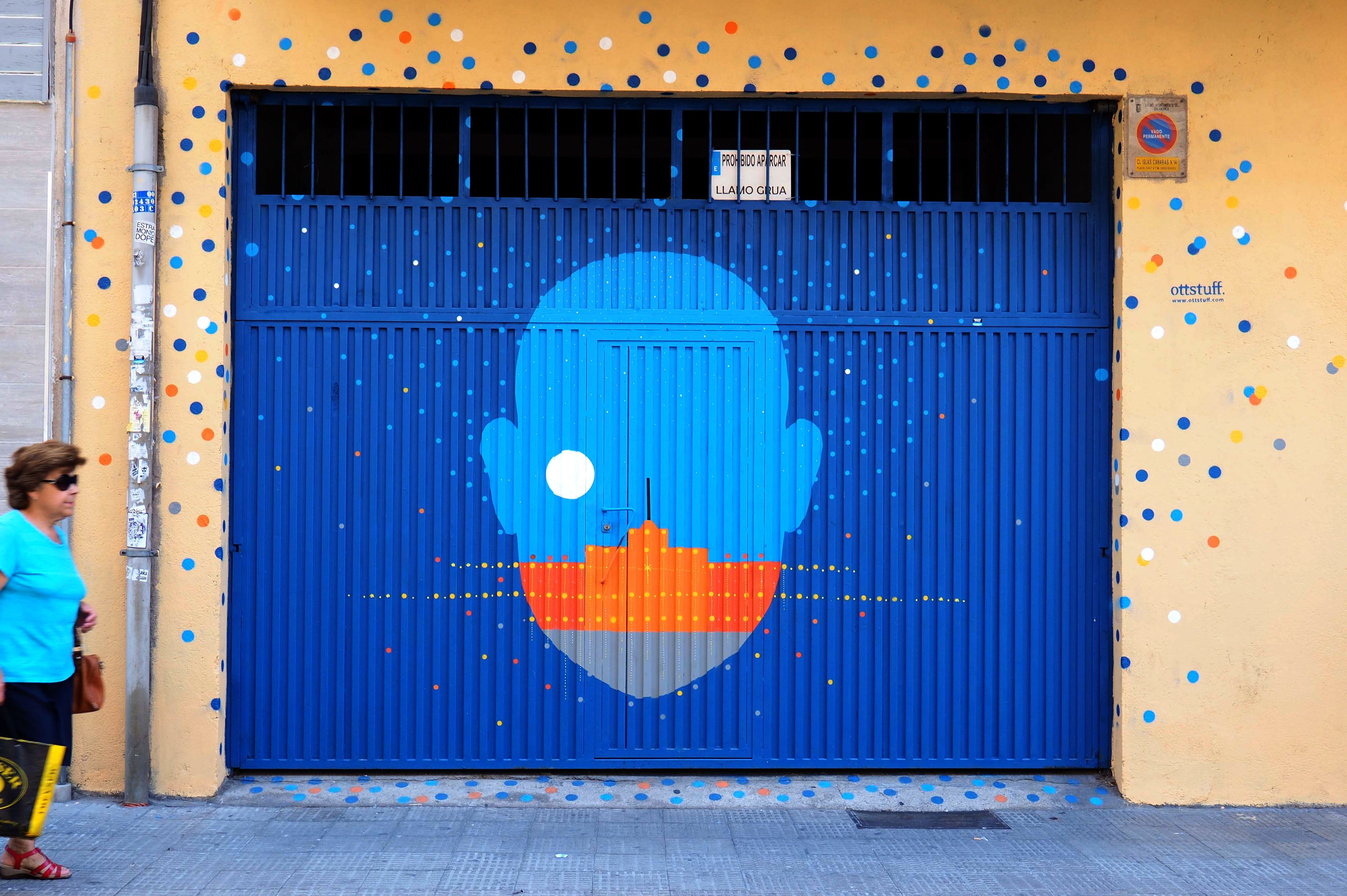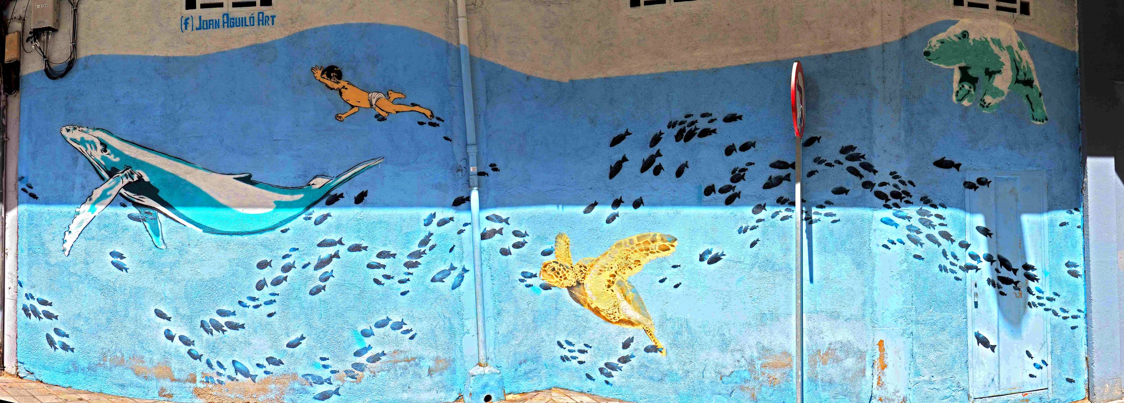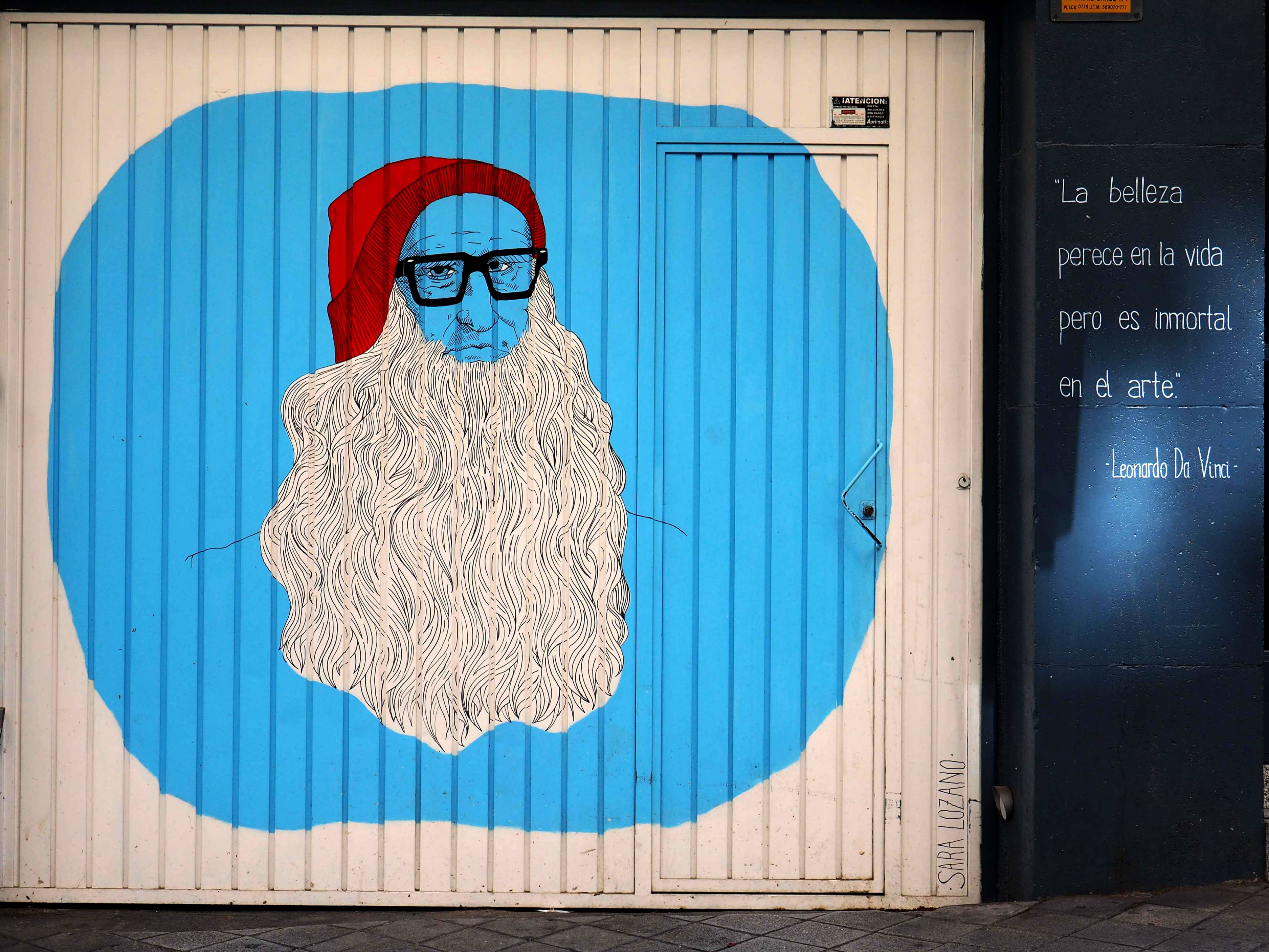 Bilder von Aguiló habe ich erstmalig in Lübeck entdeckt und ihn letztes Jahr in Madrid wiedergefunden. Beide bisher gefundenen Arbeiten waren Paste-ups und diesmal ein ganzes Mural! Das Foto verzerrt ein wenig, da es eine Panoramaaufnahme ist.
