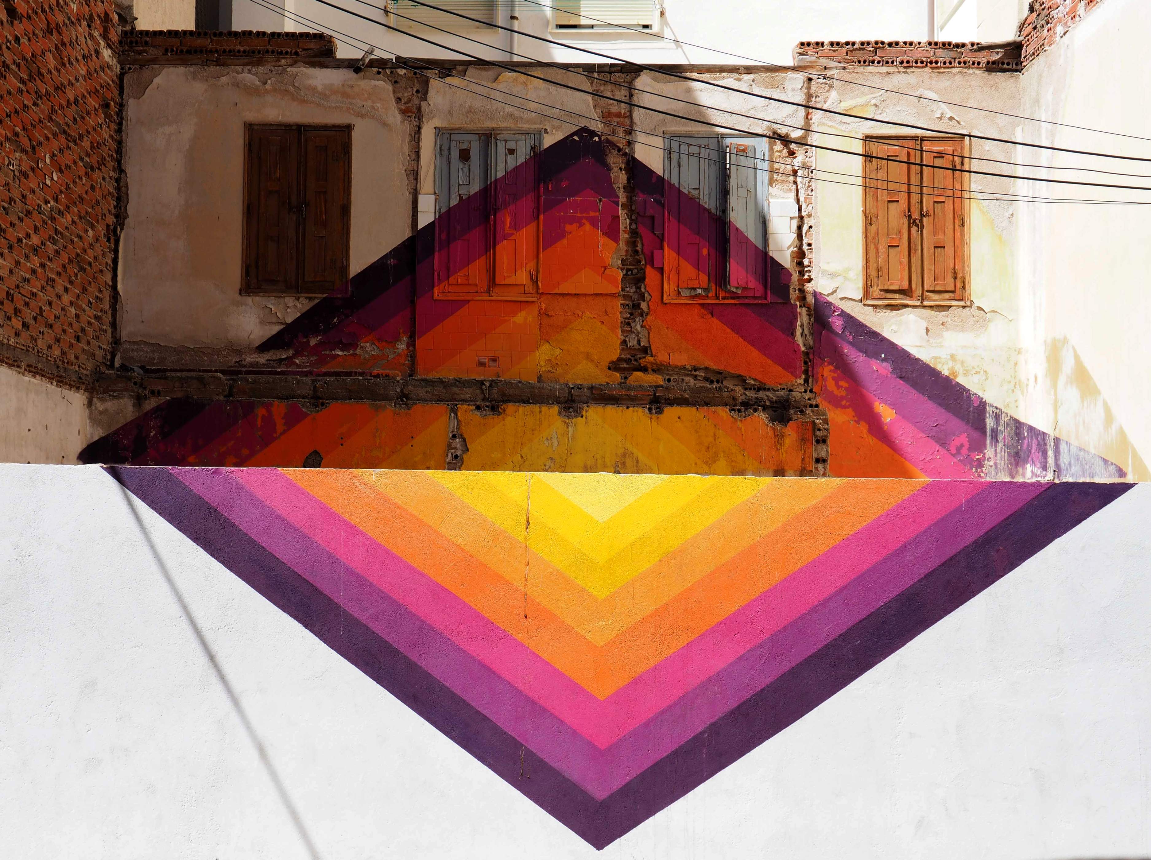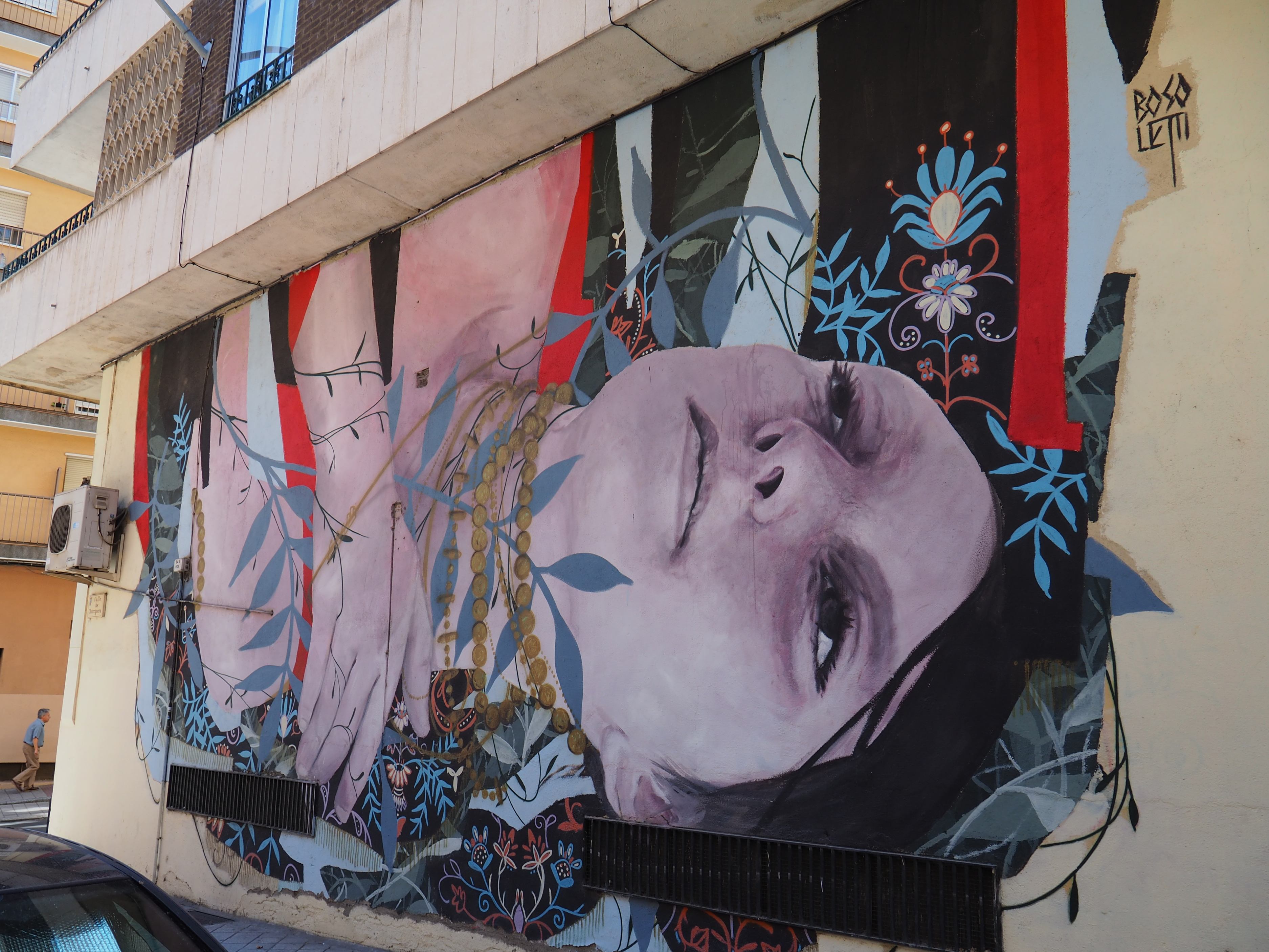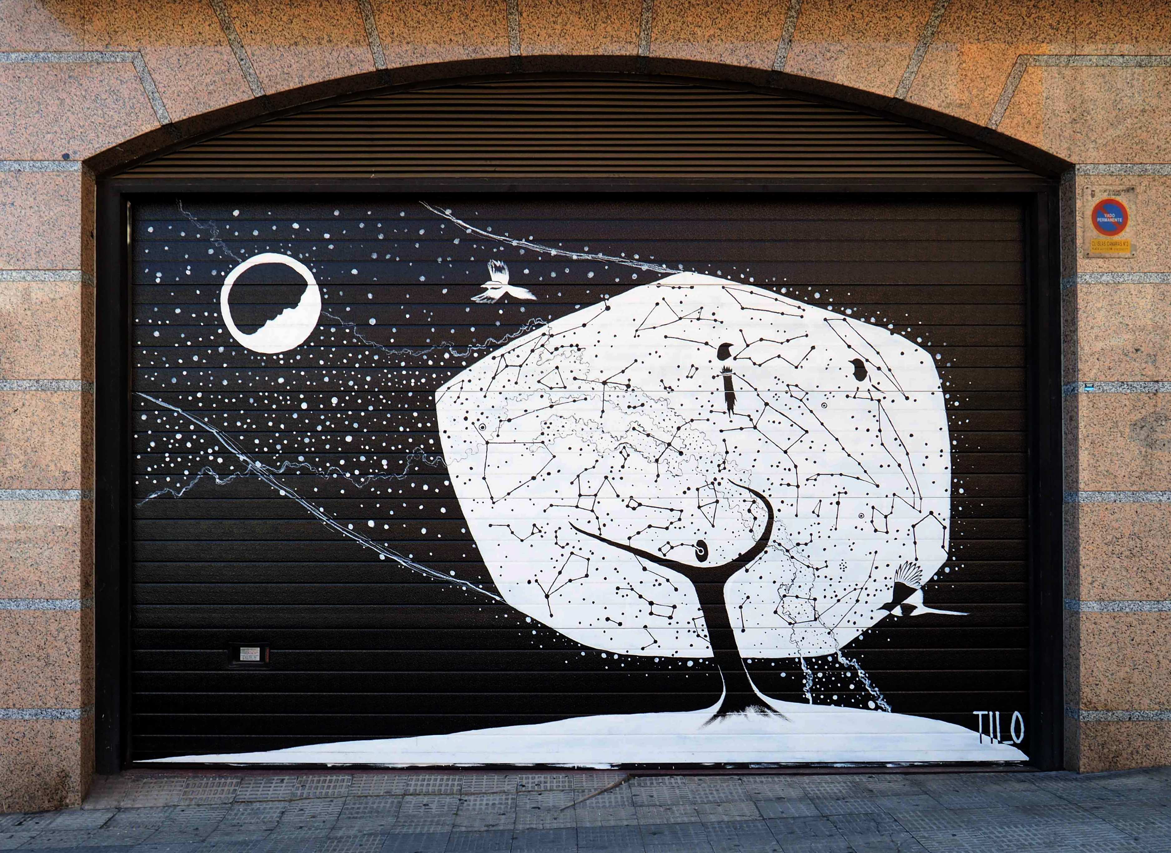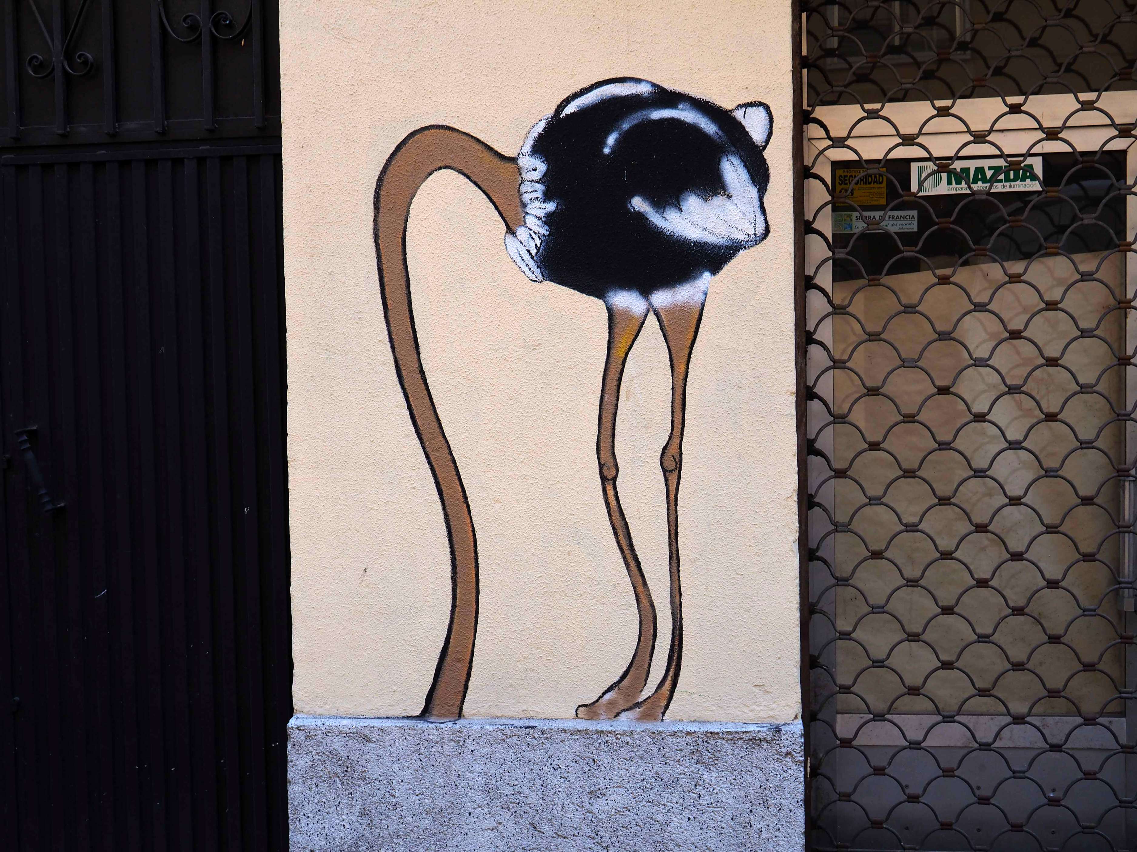Bilder von Aguiló habe ich erstmalig in Lübeck entdeckt und ihn letztes Jahr in Madrid wiedergefunden. Beide bisher gefundenen Arbeiten waren Paste-ups und diesmal ein ganzes Mural! Das Foto verzerrt ein wenig, da es eine Panoramaaufnahme ist.