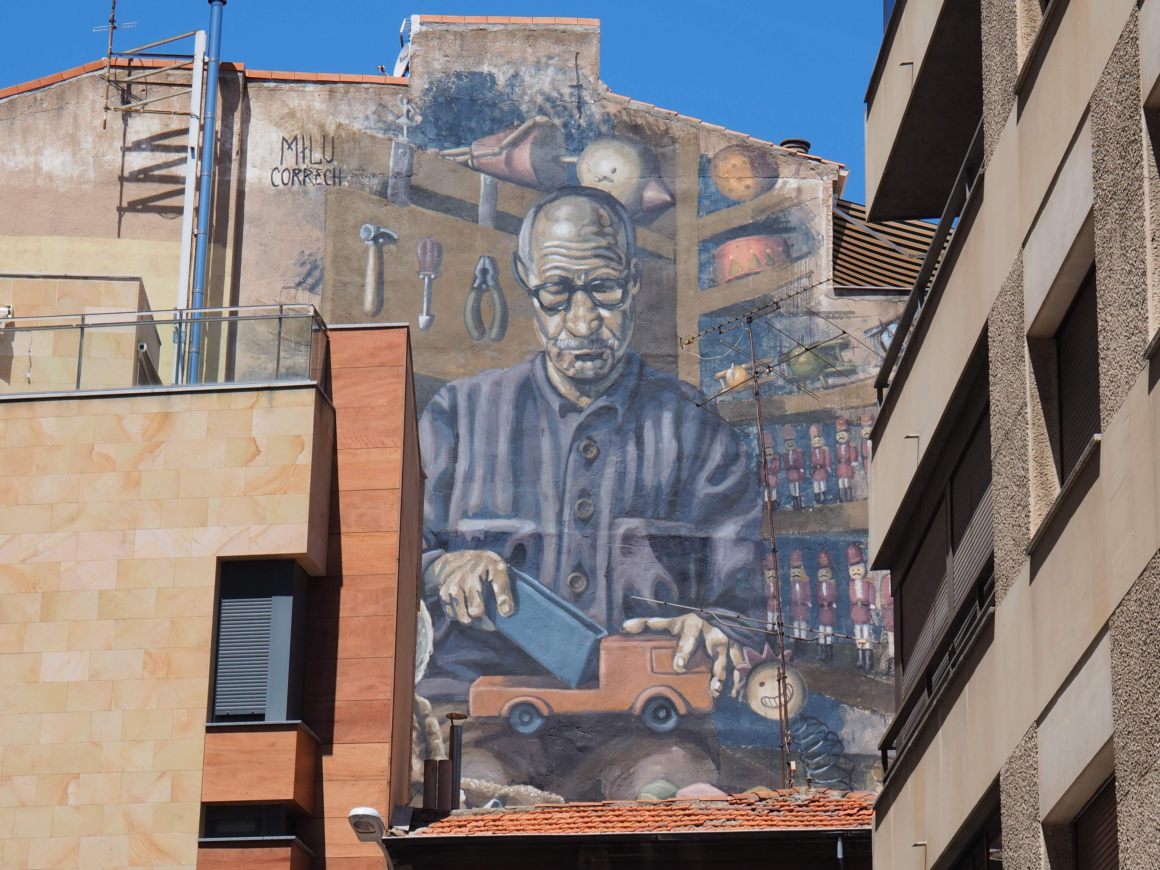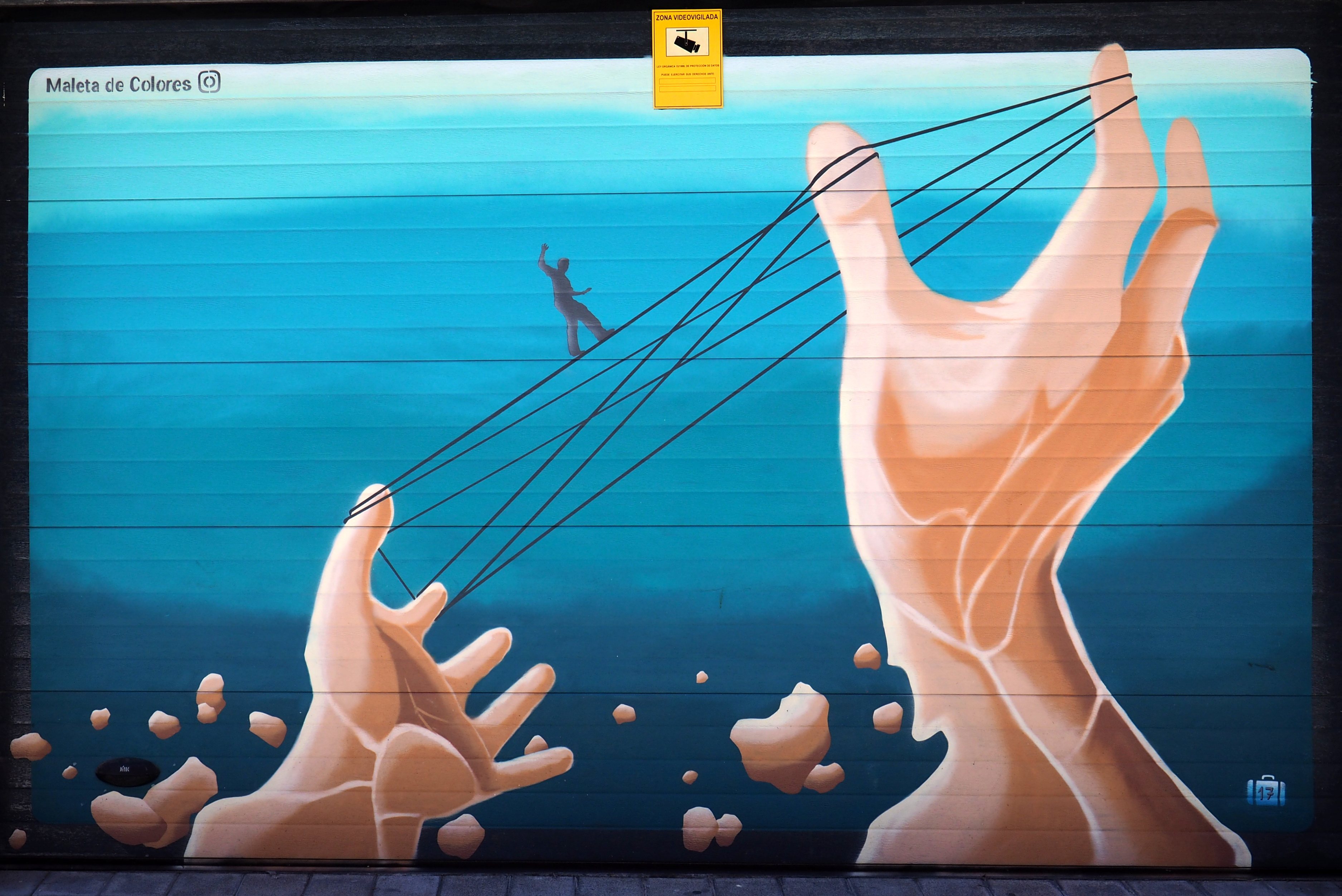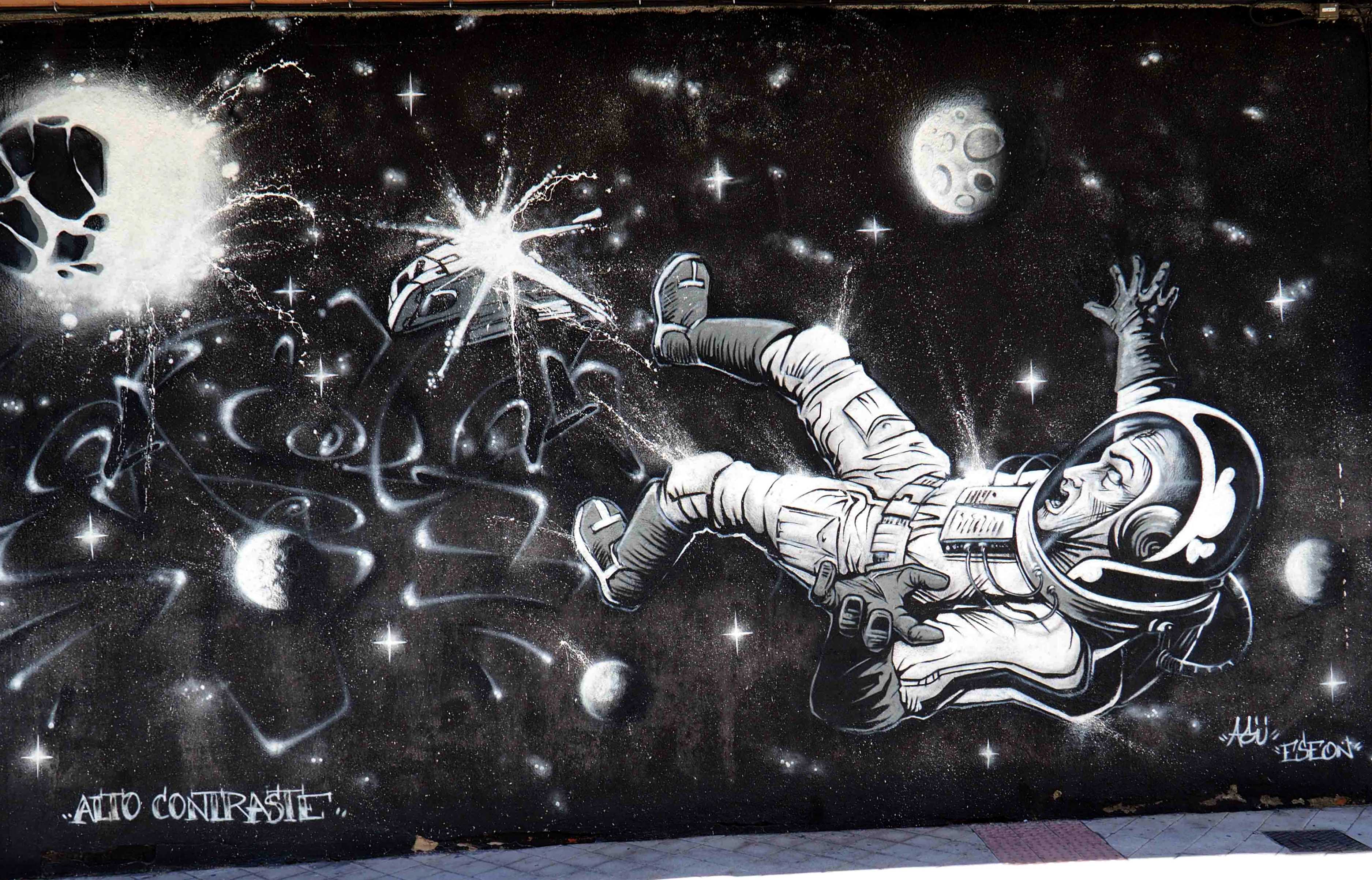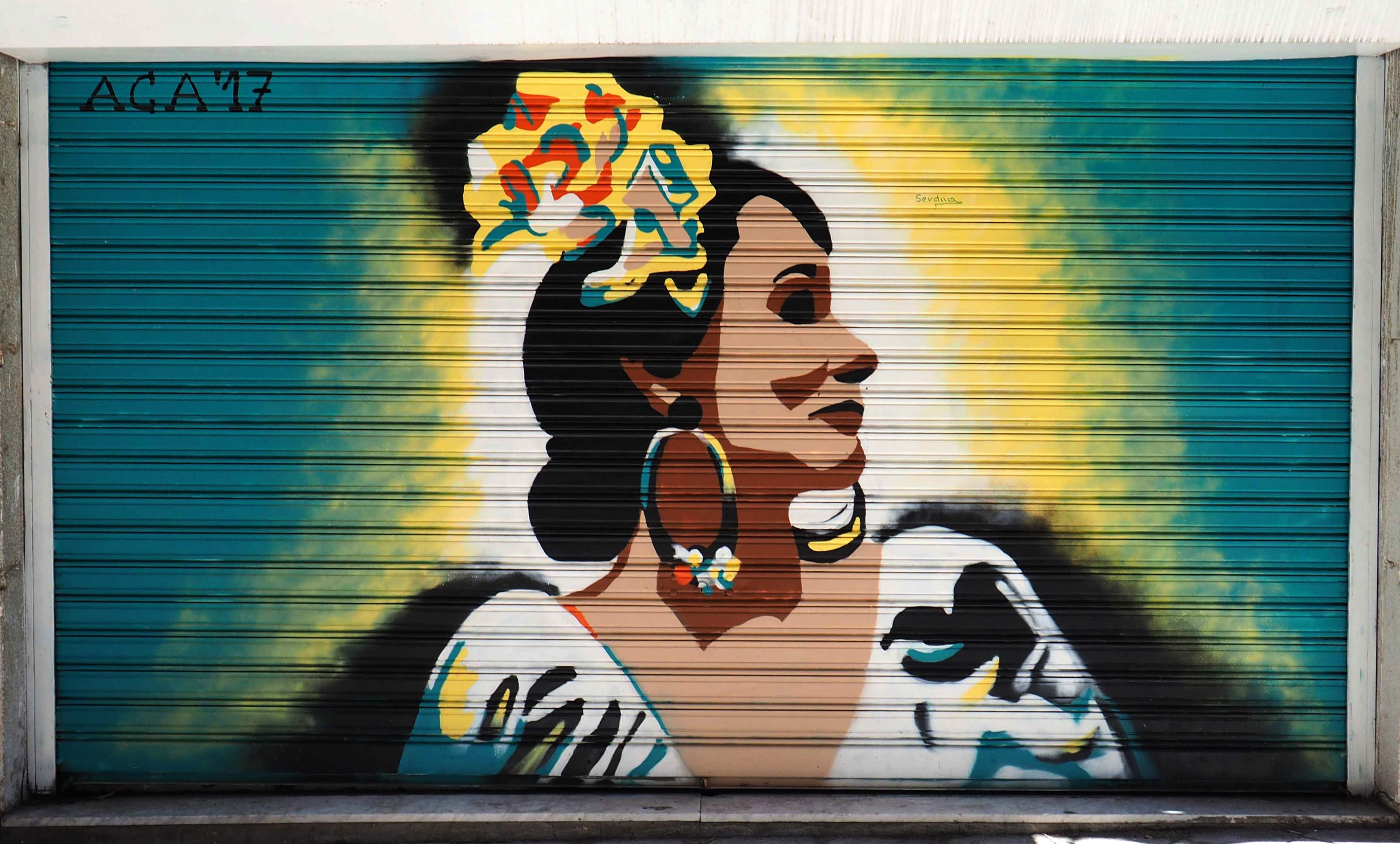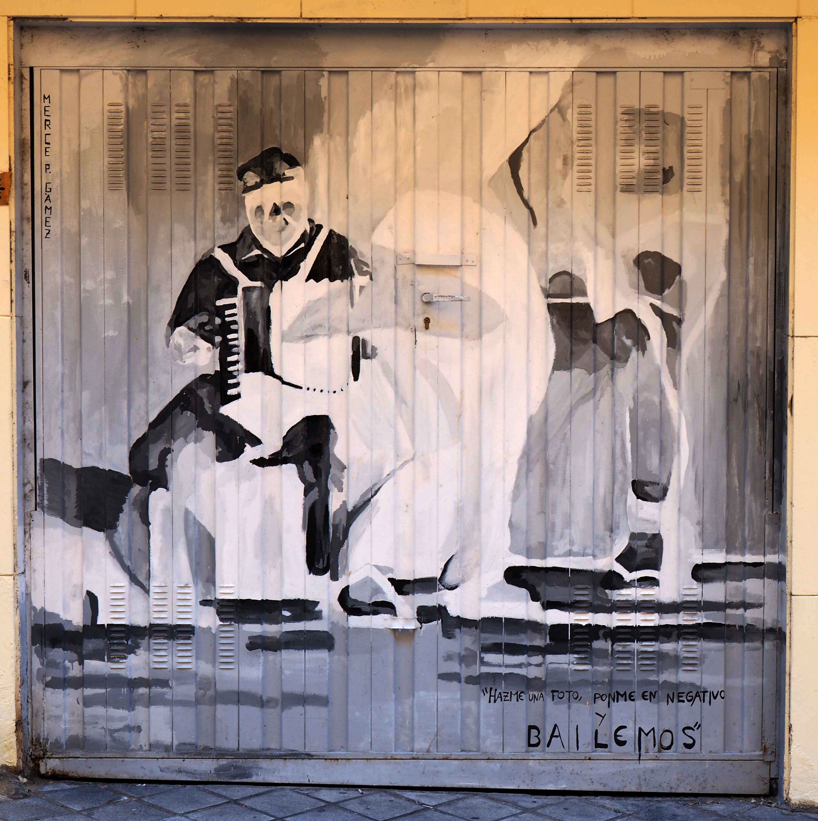 Bilder von Aguiló habe ich erstmalig in Lübeck entdeckt und ihn letztes Jahr in Madrid wiedergefunden. Beide bisher gefundenen Arbeiten waren Paste-ups und diesmal ein ganzes Mural! Das Foto verzerrt ein wenig, da es eine Panoramaaufnahme ist.