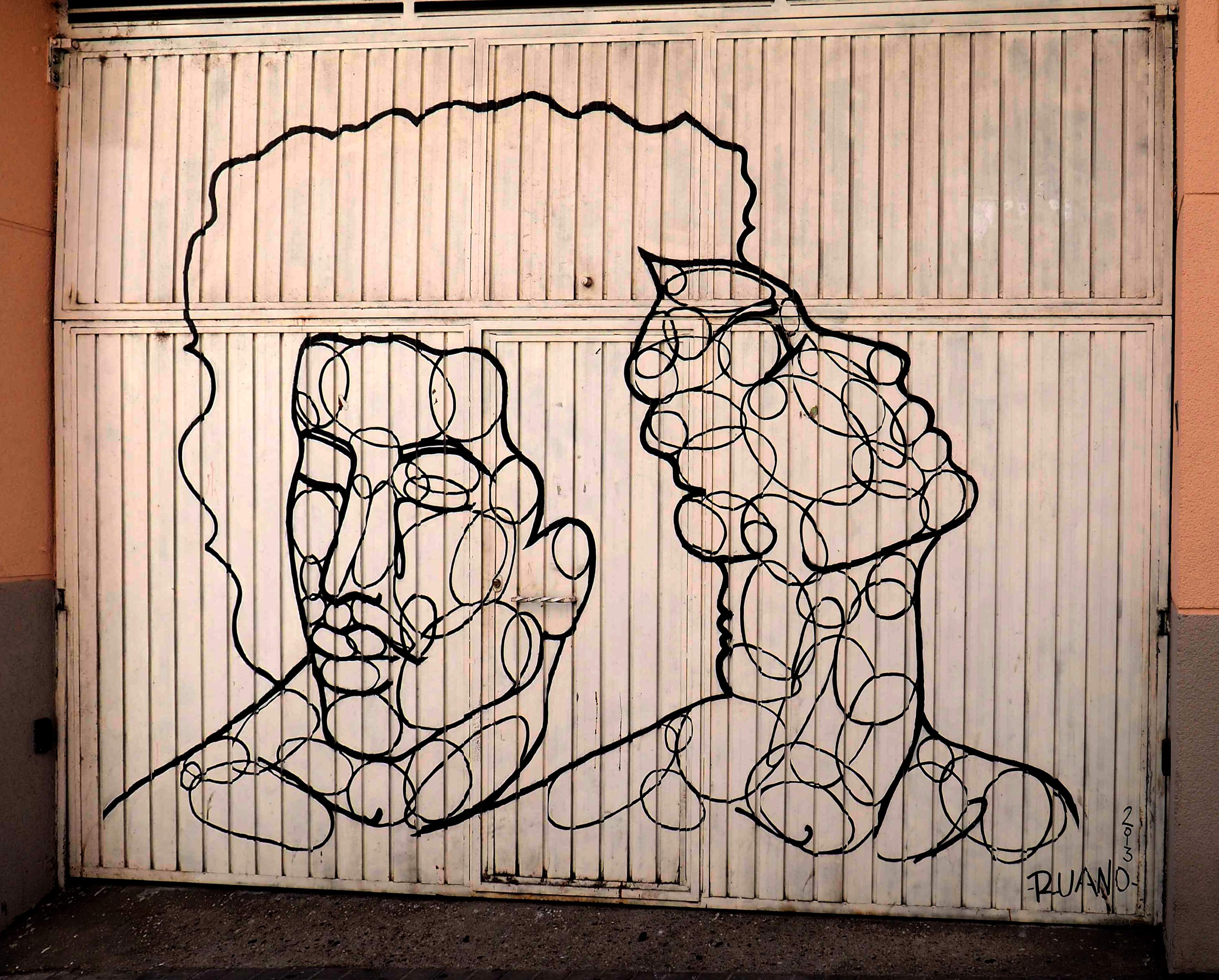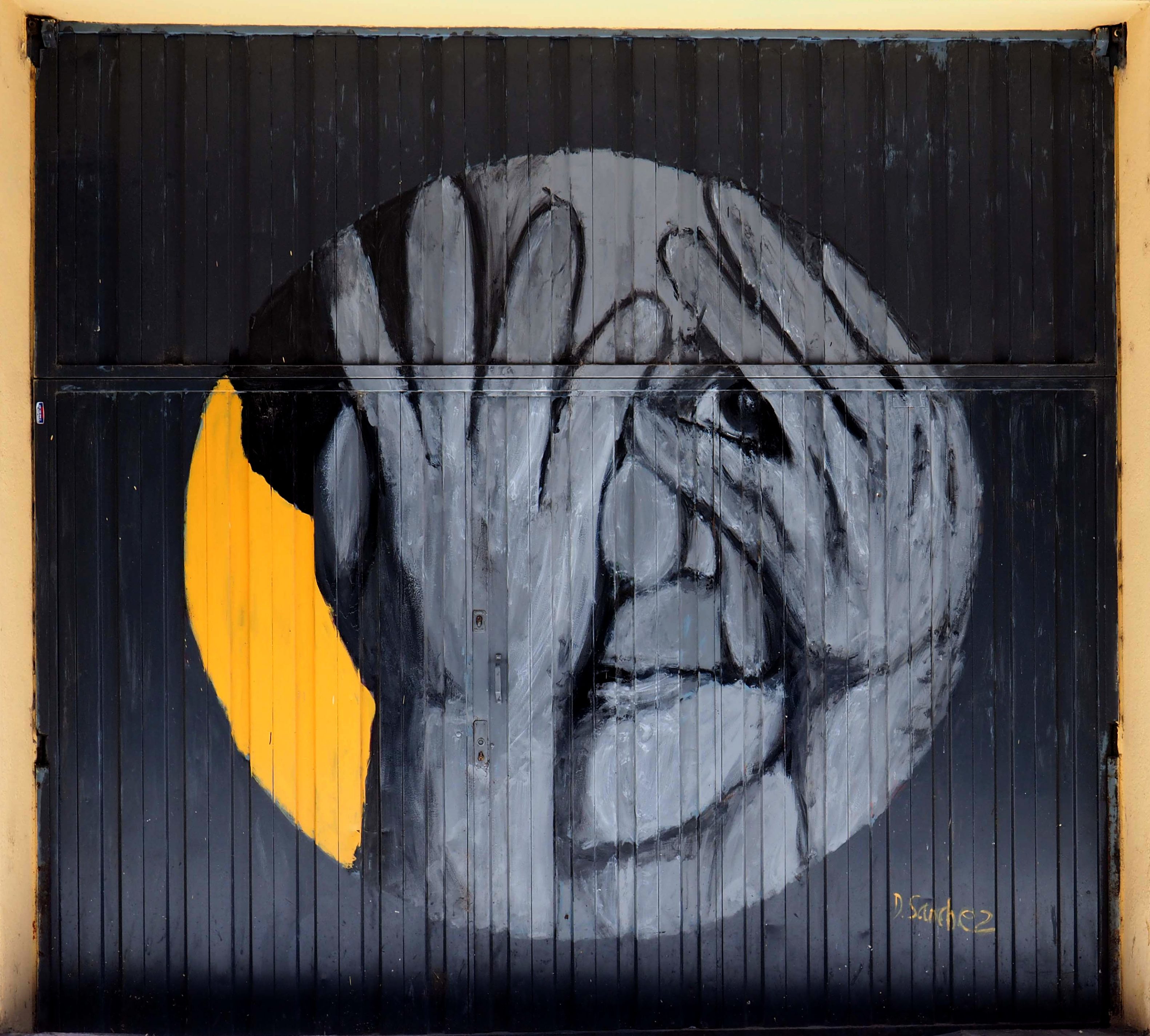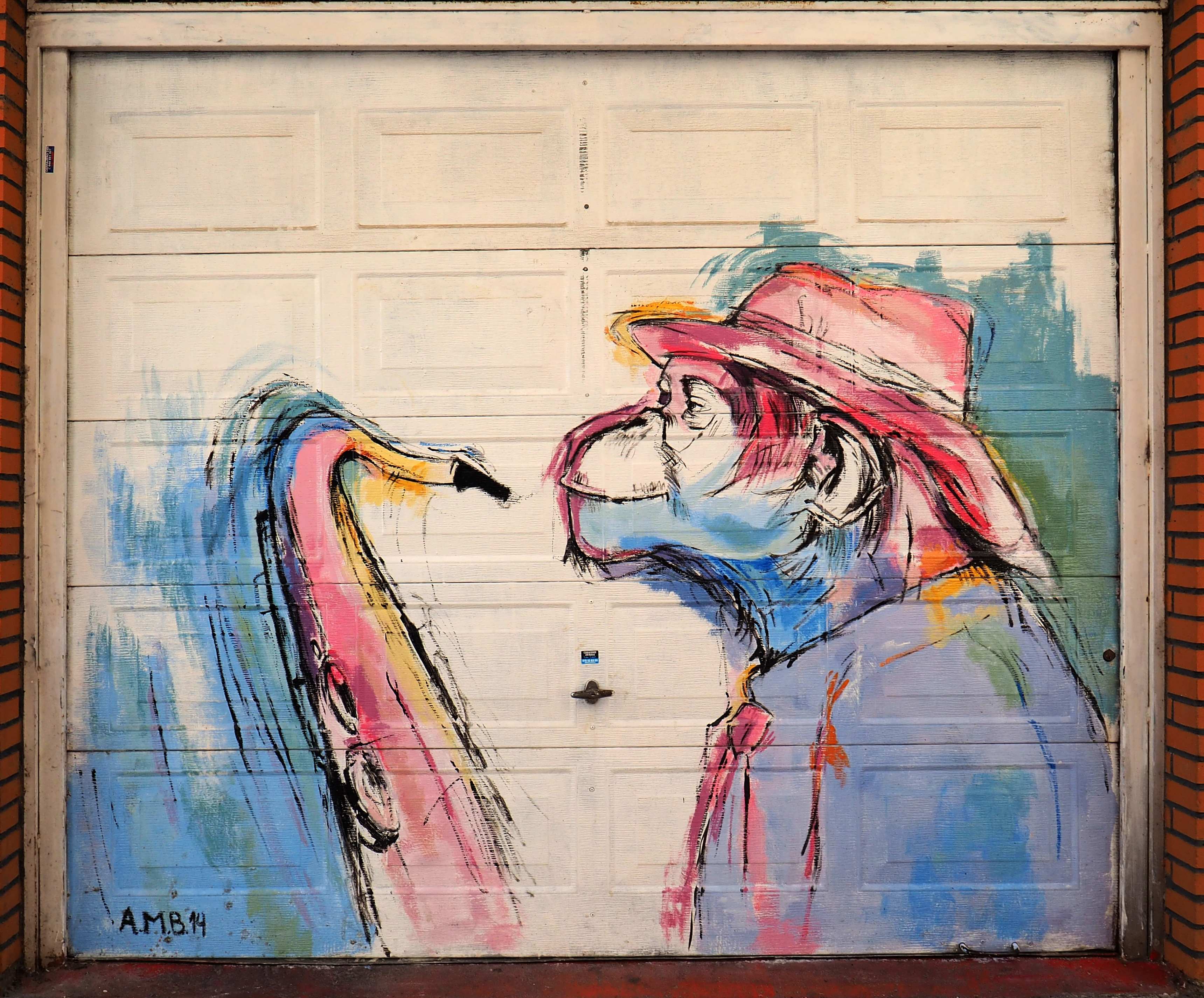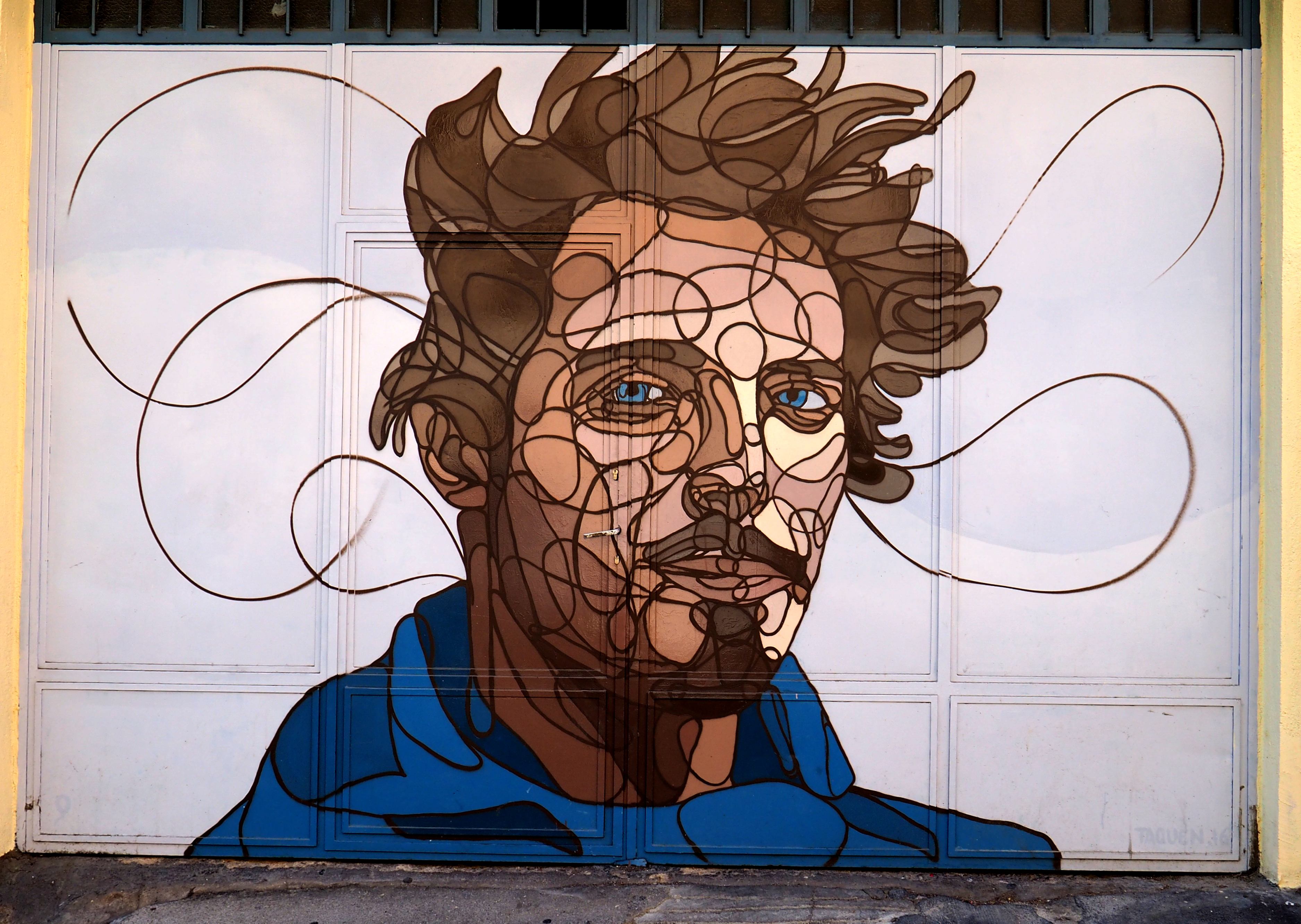 Als ich mittags fotografierend durchs Viertel zog, sprach mich ein älterer Herr an. „Das da ist von mir“, verstand ich, und fragte noch mal nach. Ich bin nicht hundertprozentig sicher, ob er wirklich sein Bild zeigte, oder ob er nur stolz zeigen wollte, dass es die Garage seines Hauses schmückt. In jedem Falle war ich sehr beeindruckt und gratulierte ihm dazu. Und schon war er hinter seiner Haustür verschwunden.