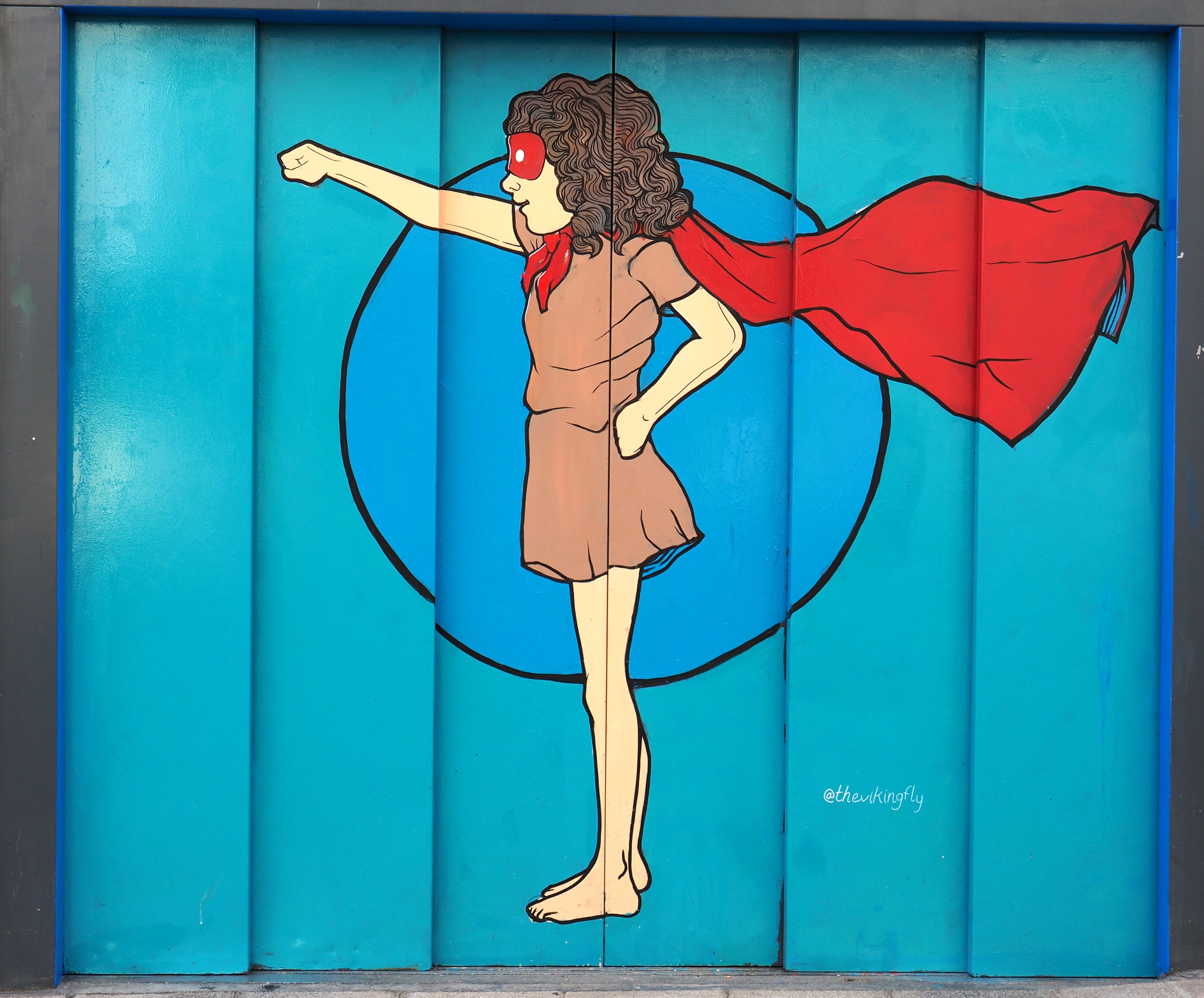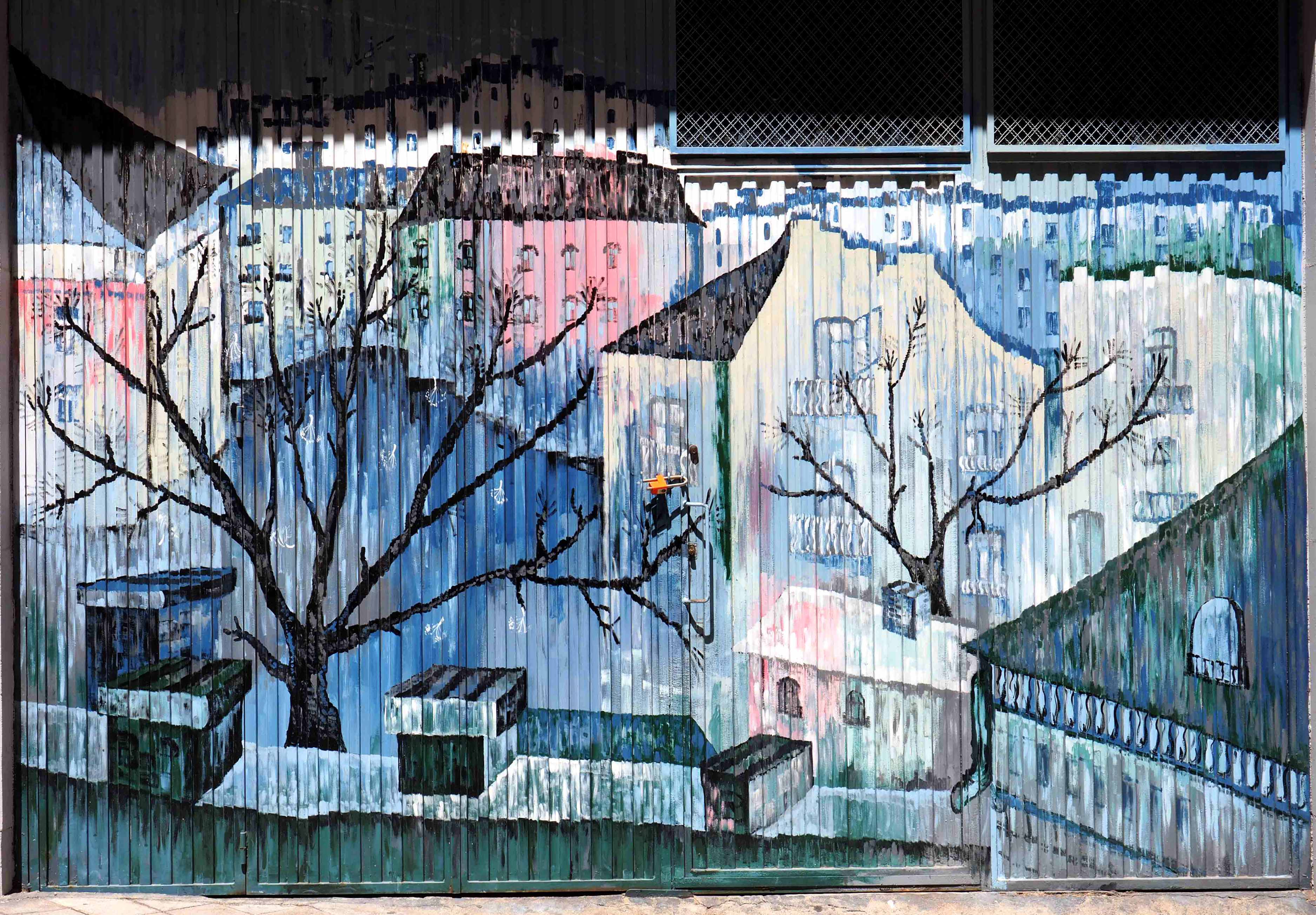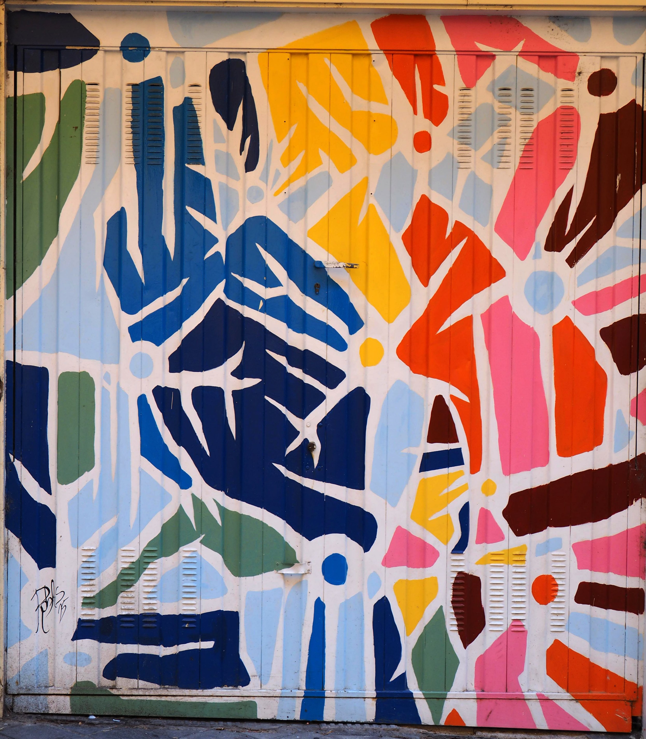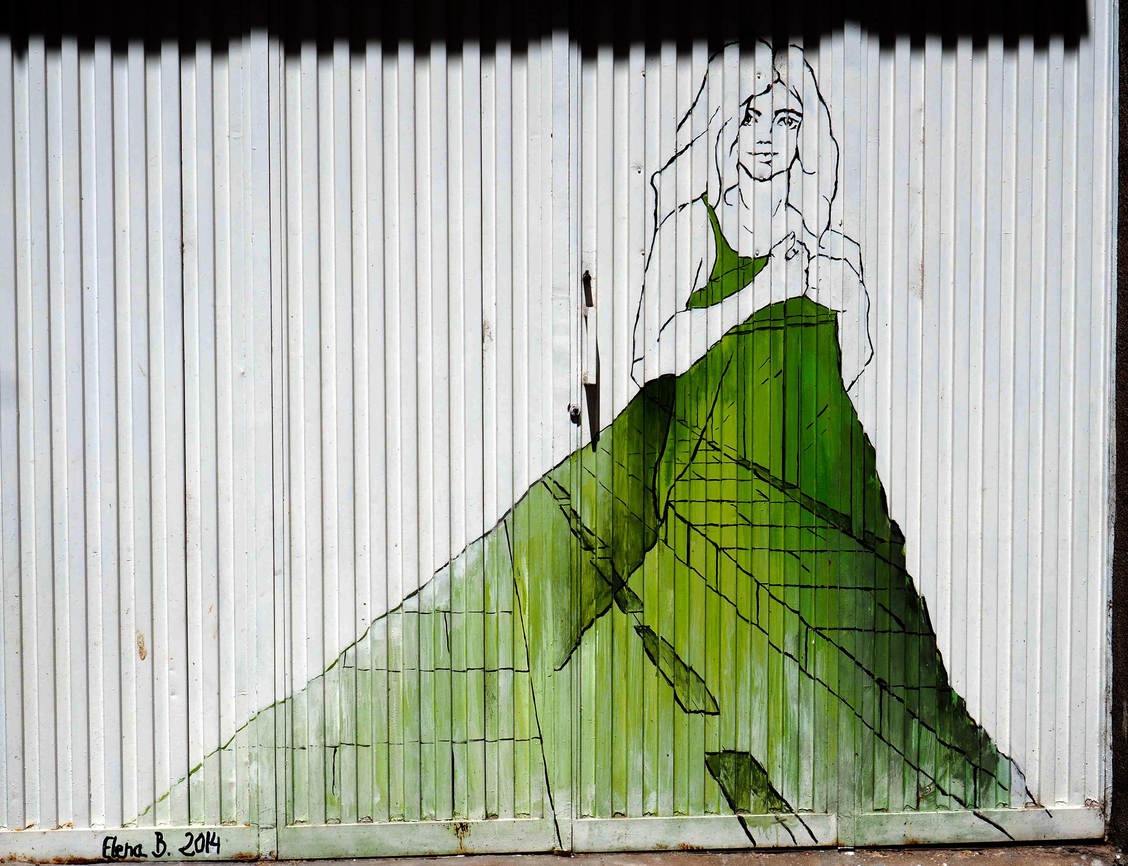 Als ich mittags fotografierend durchs Viertel zog, sprach mich ein älterer Herr an. „Das da ist von mir“, verstand ich, und fragte noch mal nach. Ich bin nicht hundertprozentig sicher, ob er wirklich sein Bild zeigte, oder ob er nur stolz zeigen wollte, dass es die Garage seines Hauses schmückt. In jedem Falle war ich sehr beeindruckt und gratulierte ihm dazu. Und schon war er hinter seiner Haustür verschwunden.