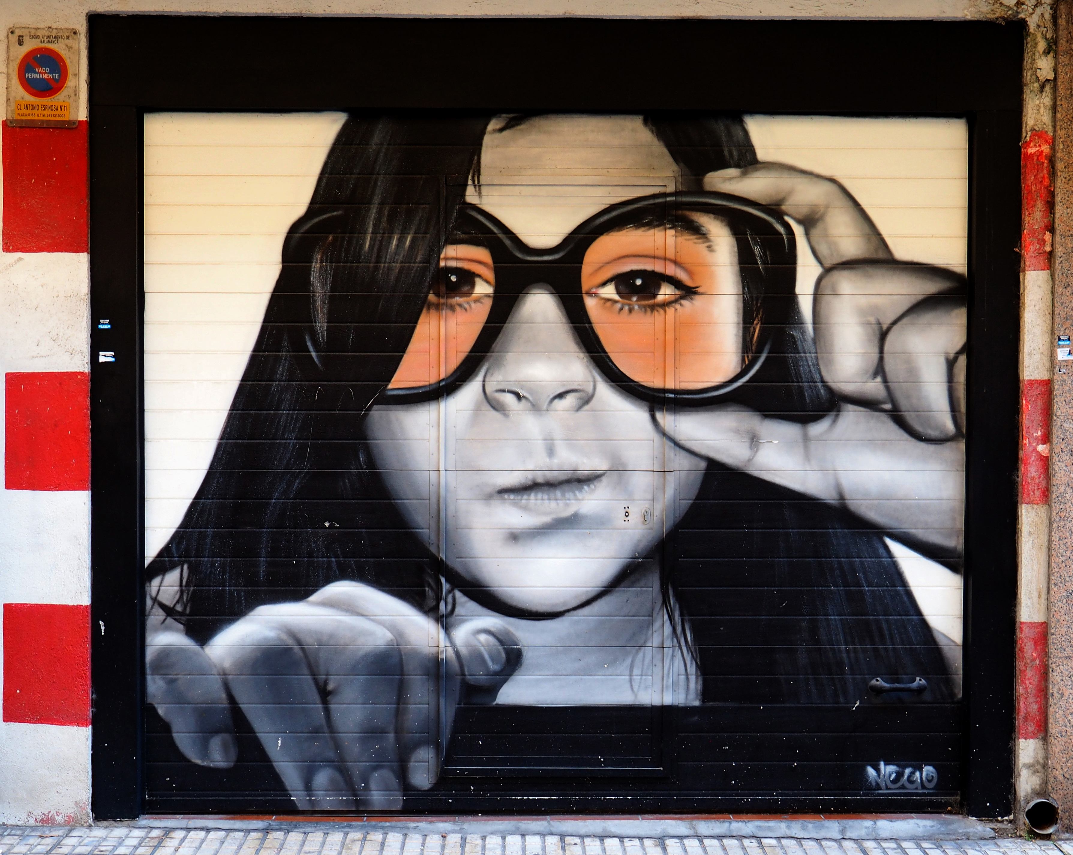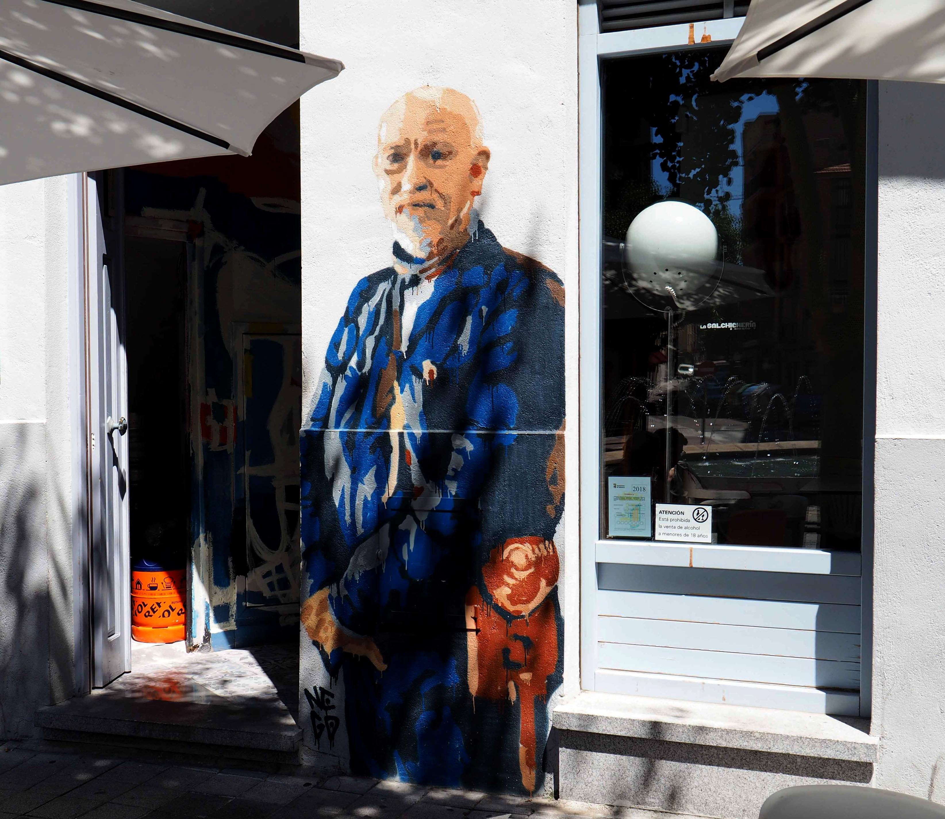 Ein Name taucht im Barrio häufig auf: Jorge Nego. Nego hat im Jahre 2000 als Autodidakt begonnen, in Salamanca studiert und arbeitet meines Wissens nach, vorwiegend in Spanien. Das Mädchen mit der Brille und auch Herrn Malkovich finde ich großartig.