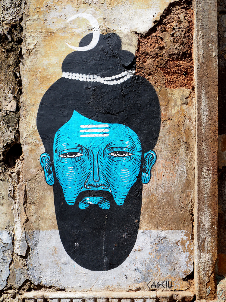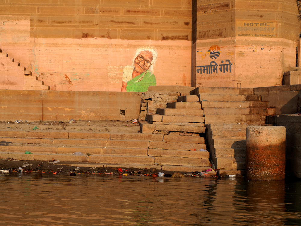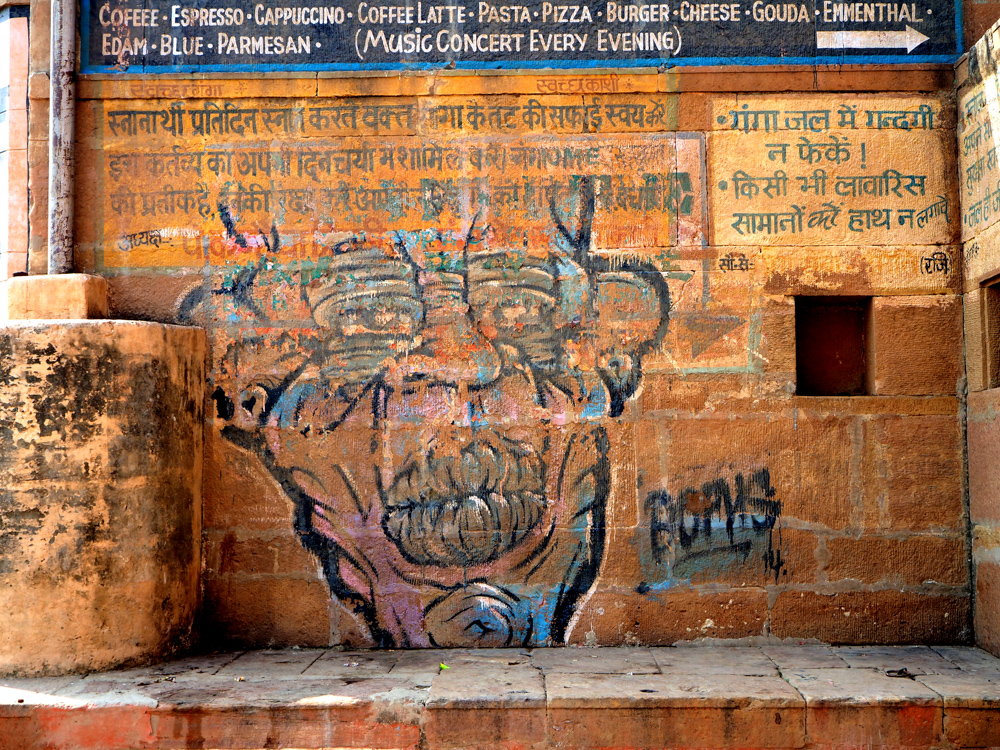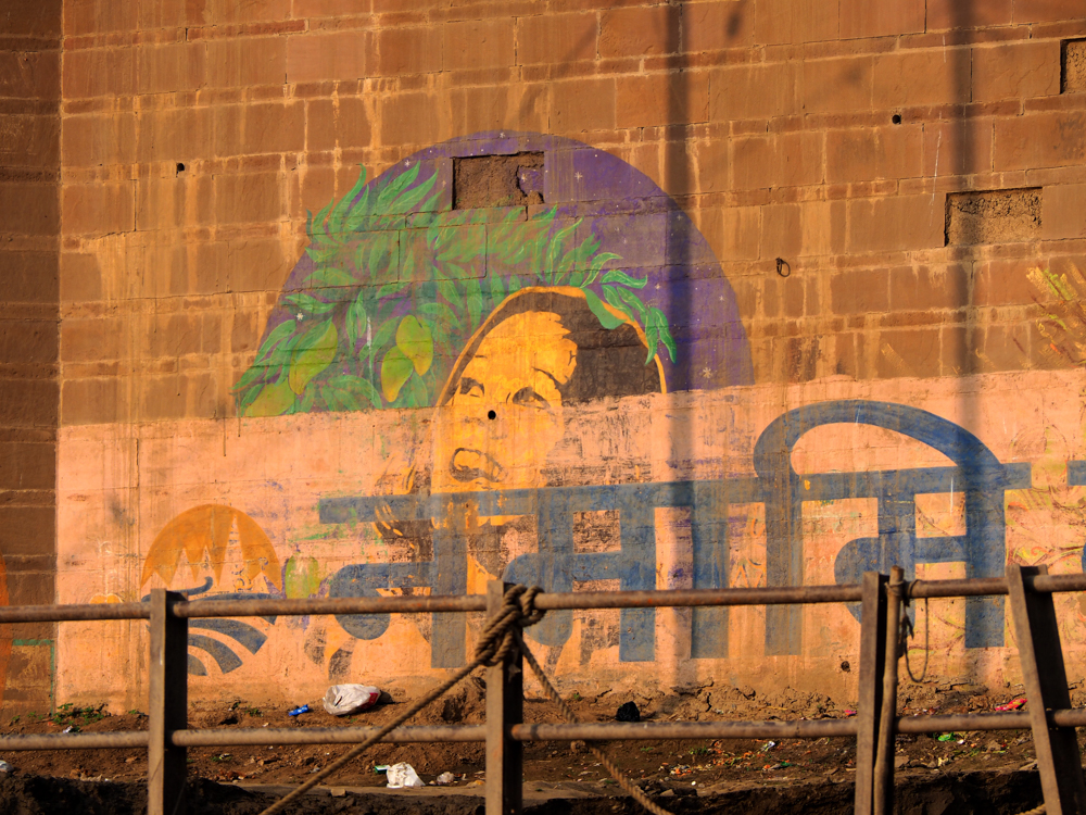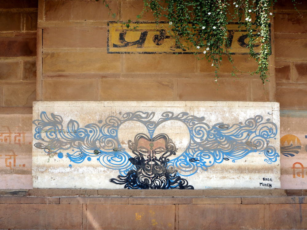 Mittlerweile vom Hochwasser des Ganges stark mitgenommen, bzw. verblasst, sind die Arbeiten des Kölner Kollektivs Captain Borderline.