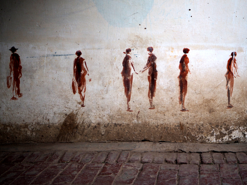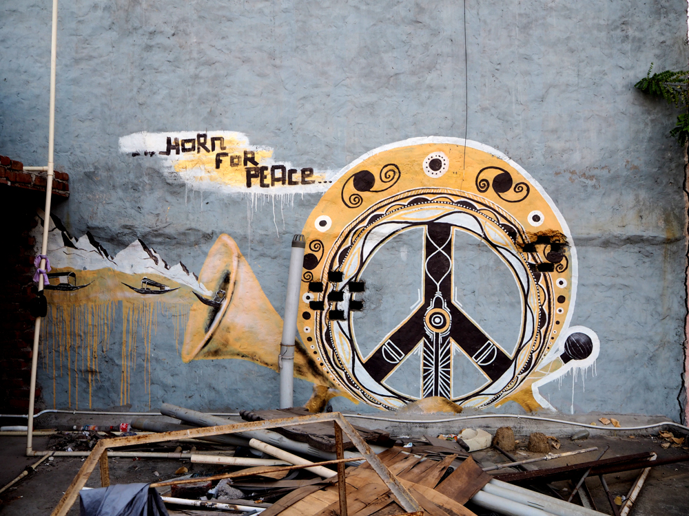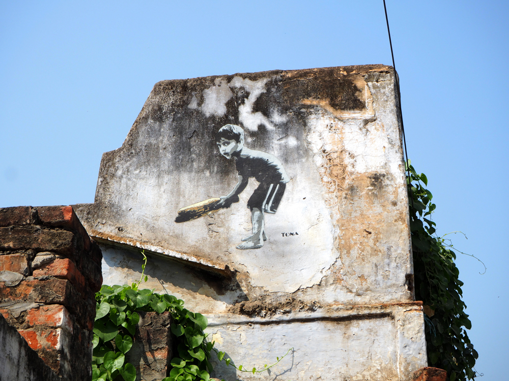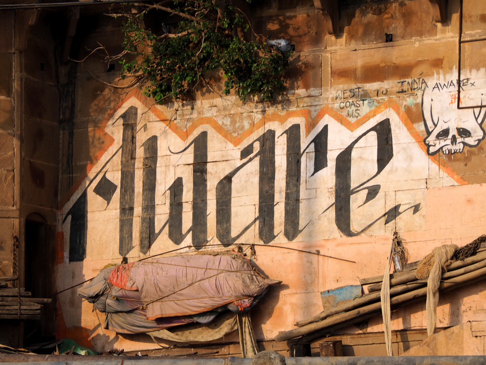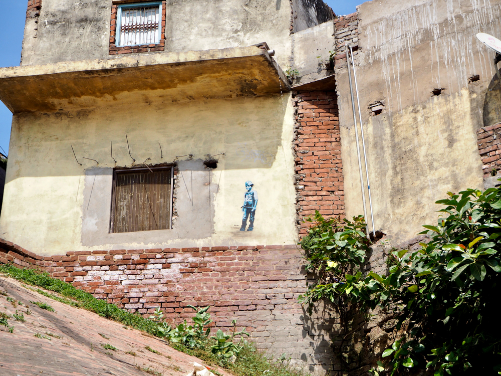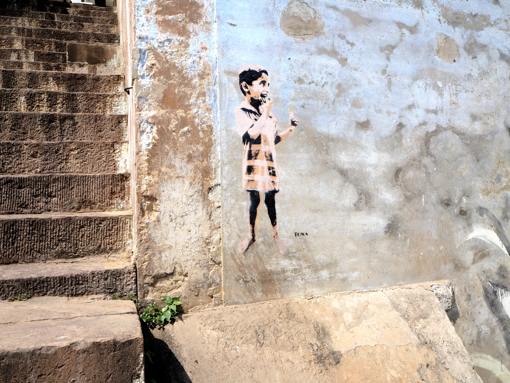 Mittlerweile vom Hochwasser des Ganges stark mitgenommen, bzw. verblasst, sind die Arbeiten des Kölner Kollektivs Captain Borderline.