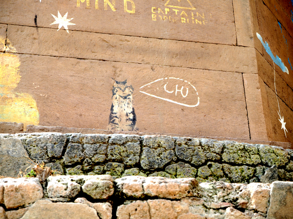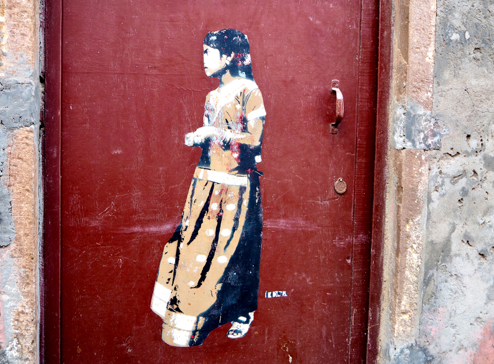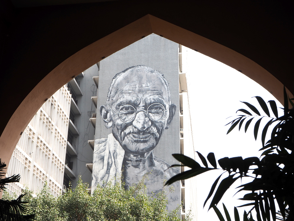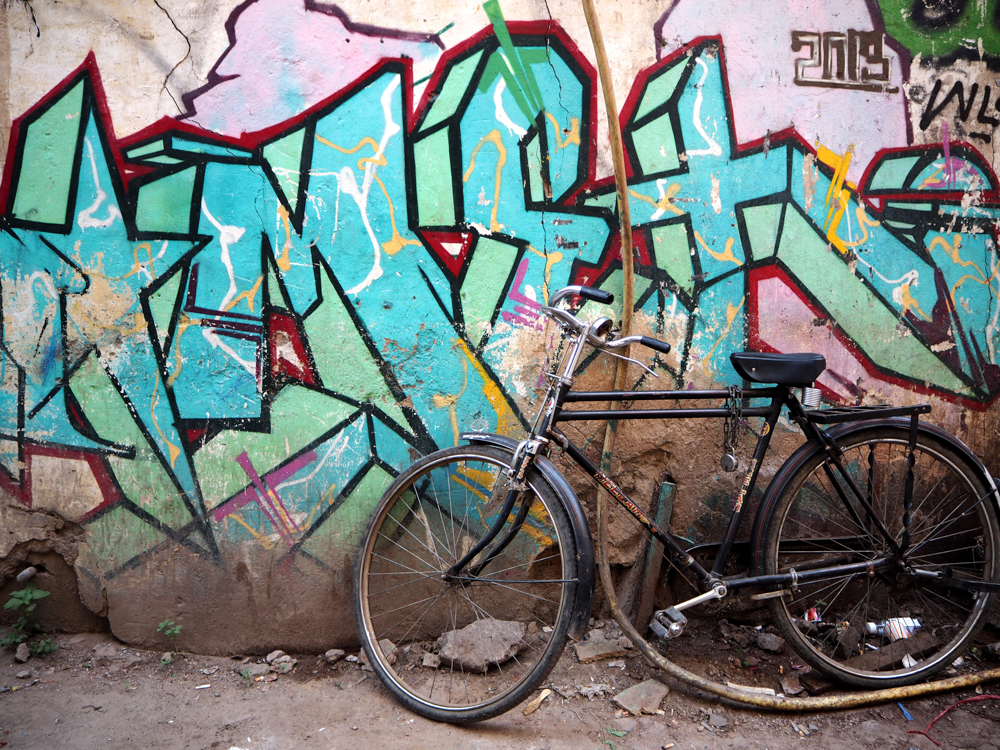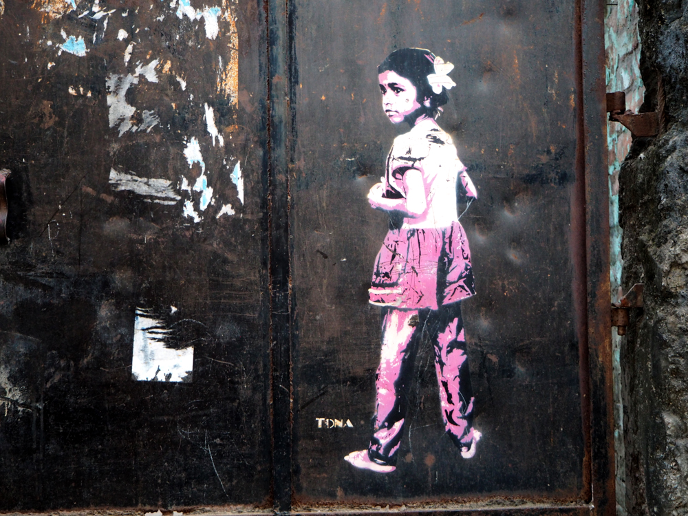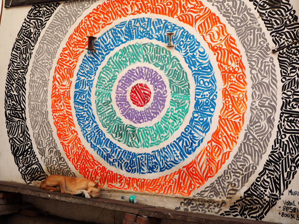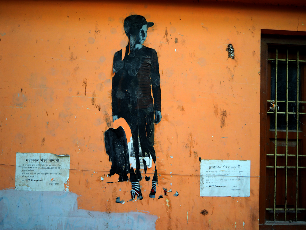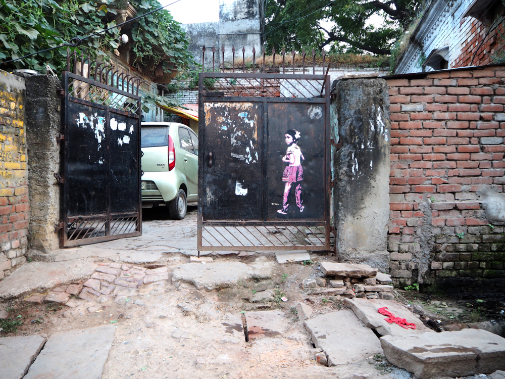 In Delhi habe ich diese Bild entdeckt und mit Hilfe und Erlaubnis des Hausbesitzers, konnte ich auf´s Dach und es richtig photographieren. Die Recherche zeigt, es ist lediglich ein Detail einer Arbeit von Captain Borderline aus Colonia. Wer hätte das gedacht!