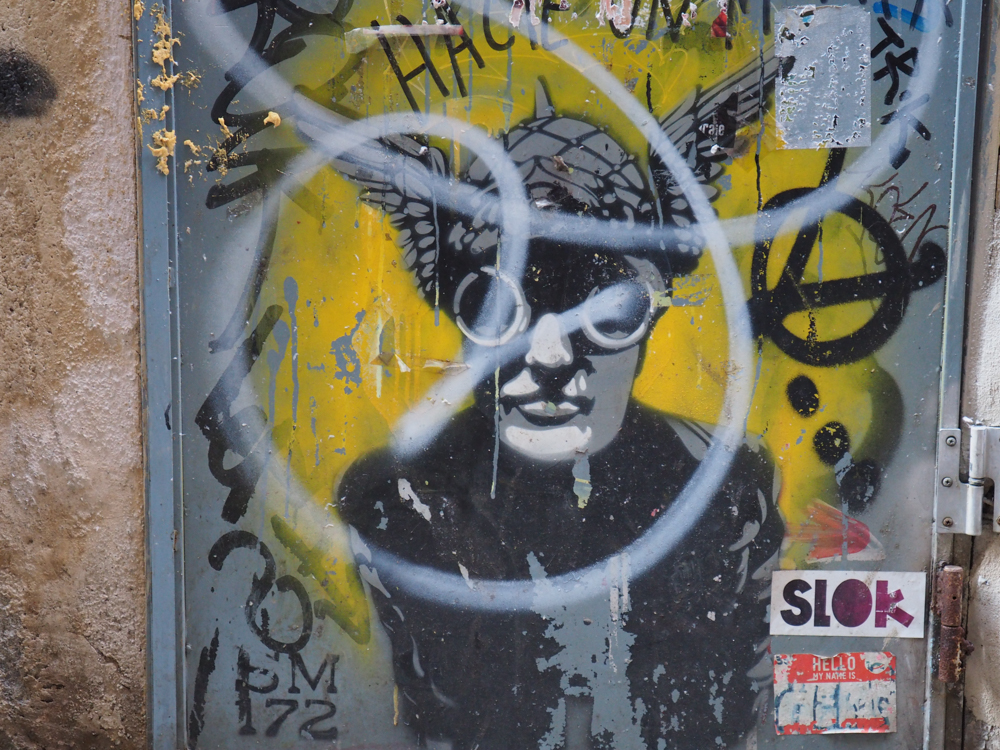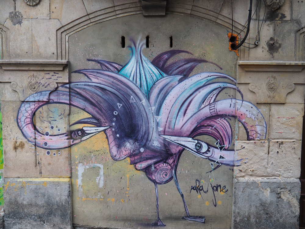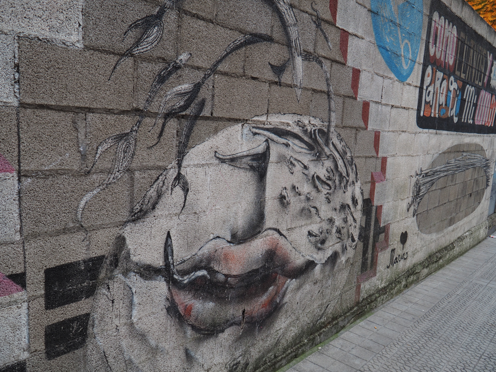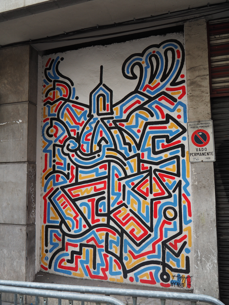 Erb Mon, ein hispanobrasilianischer Künstler, agiert seit den 1990er Jahren nicht nur im öffentlichen Raum. Seine Arbeit in der Calle Arechaga stammt aus dem Jahr 2015.