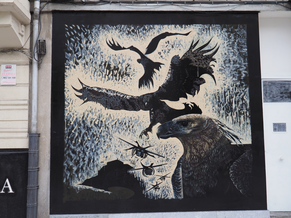 Hibernando, übersetzt „Winterschlaf“ ist ein Kollektiv, das aus dem Basken Pablo Escauriaza Gortazar und Sol Benavente Molina aus Chile besteht. Mehrere ihrer Arbeiten finden sich in Bilbao und das hier gezeigte stammt aus dem Jahr 2017.